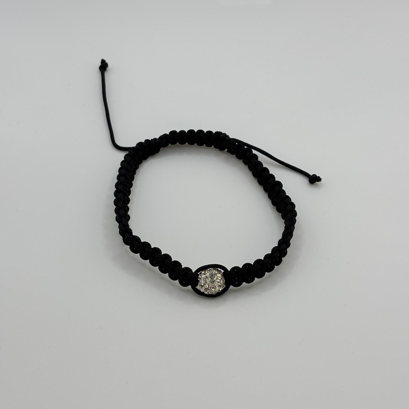 • Design Minimalist: O împletitură densă și fină din șnur negru, punând în evidență o singură sferă centrală încrustată cu cristale albe strălucitoare.