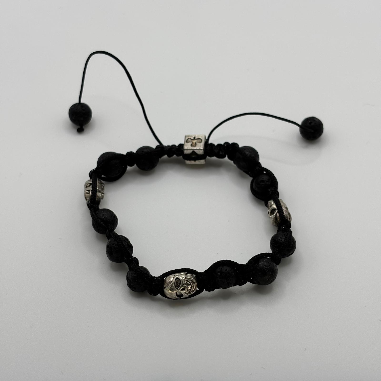 Titlu: Brățară Macrame din Rocă Vulcanică cu Accente Silver Skull
