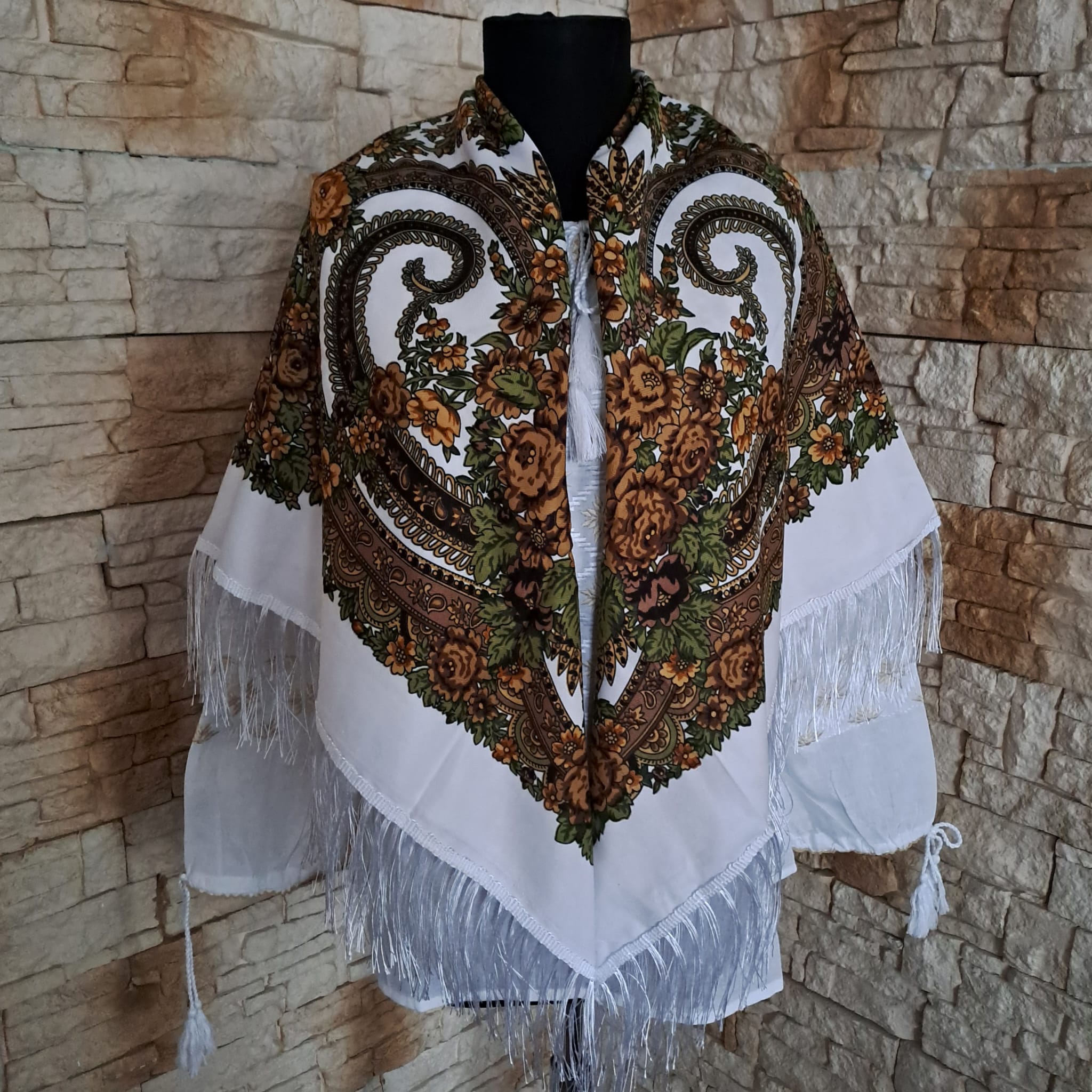 Dimensiune ;110 / 110 cm + 10 cm franjuri din matase.