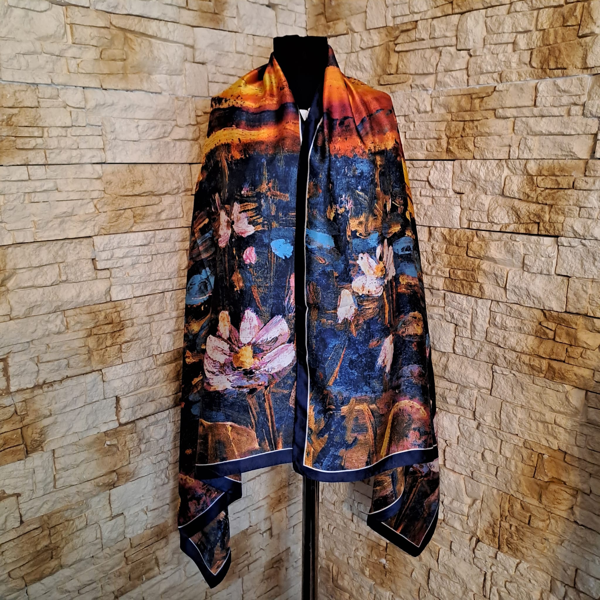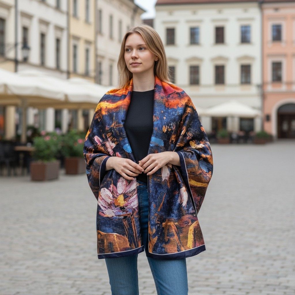 • Design distinctiv: Eșarfa prezintă un imprimeu floral artistic și abstract, într-o combinație elegantă de culori.