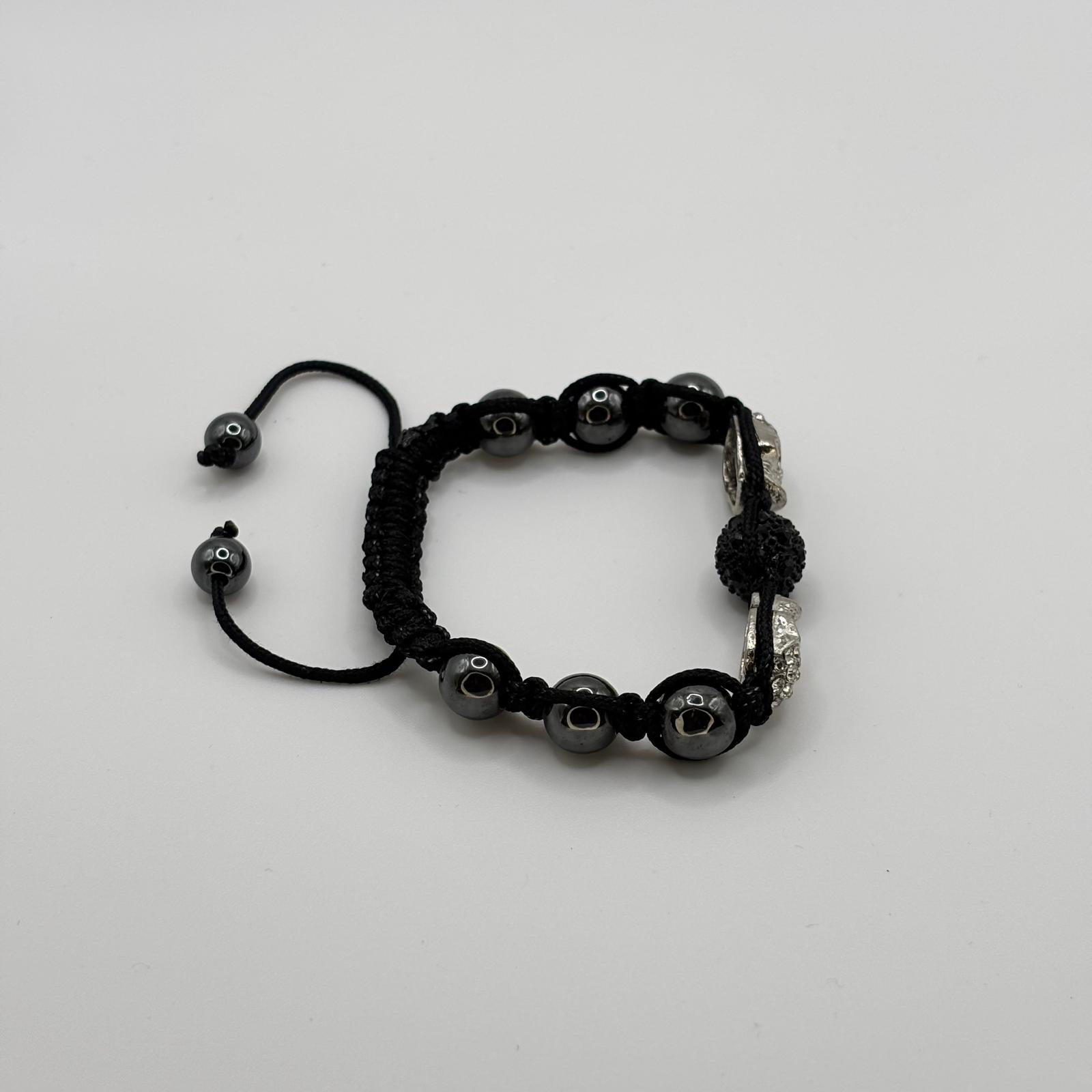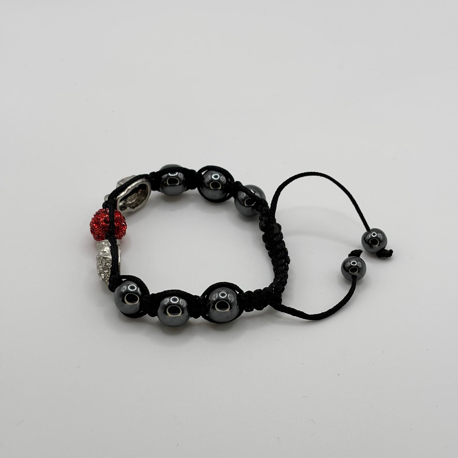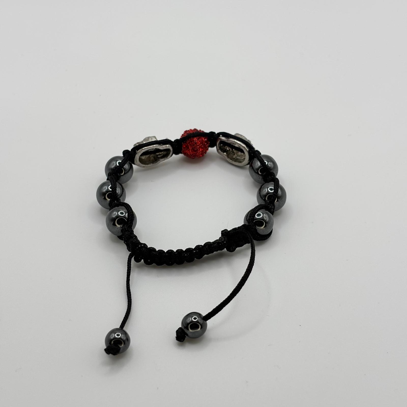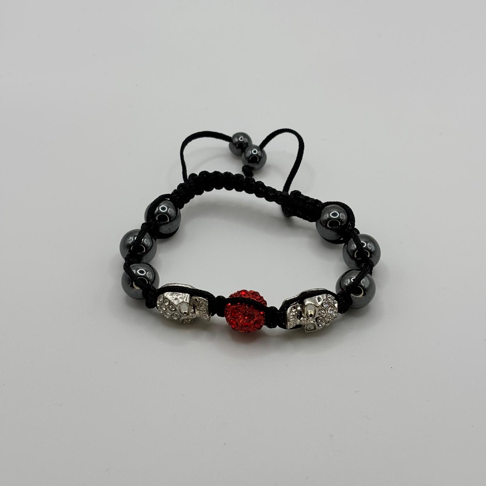 . Brățară „Silver Skulls & Crimson Spark” – Stil Rebel Macrame