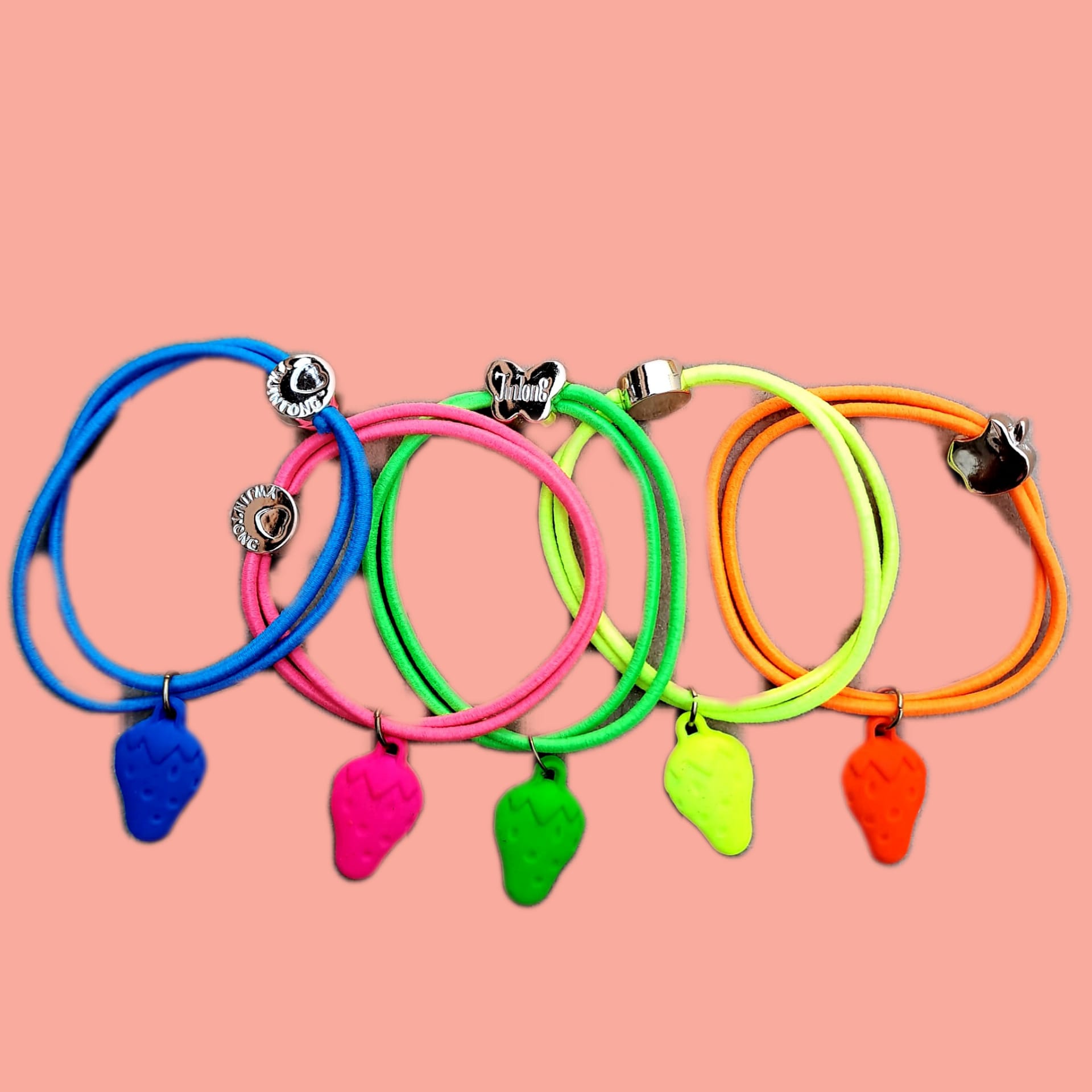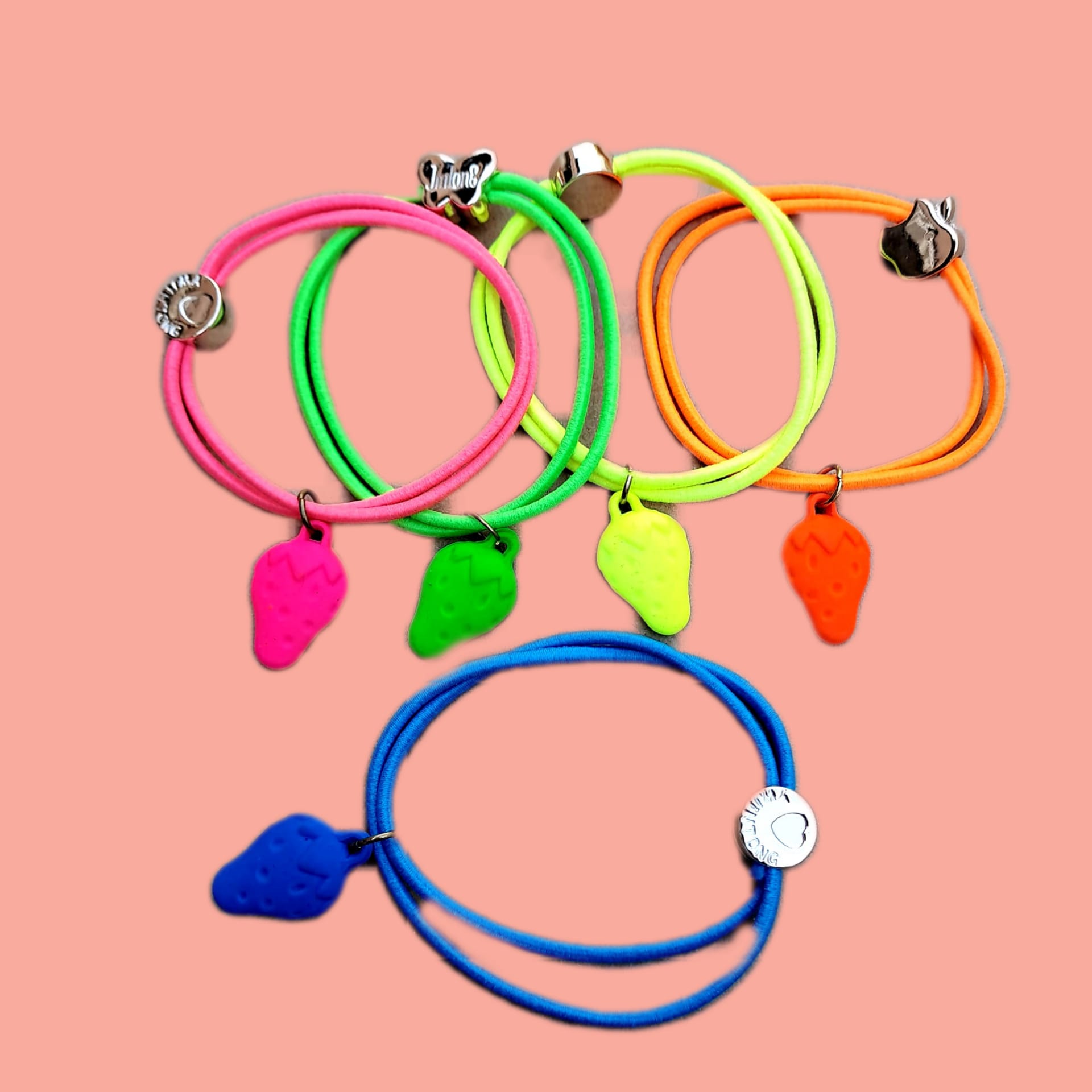 Set 5 Accesorii „Neon Fruits” – Brățări și Elastice de Păr 2-în-1