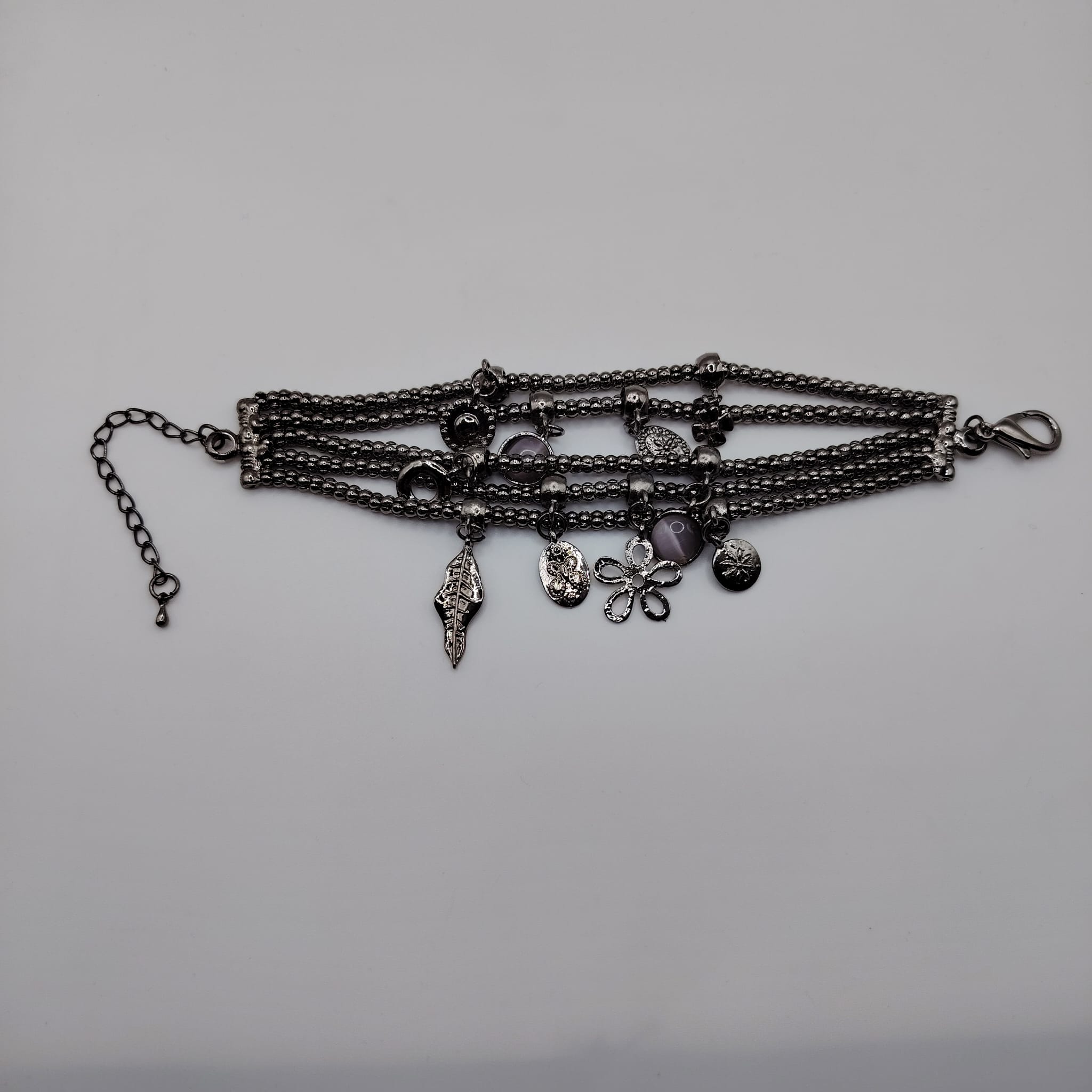 Brățară Multirând „Boho Charms” – Argintiu Antichizat cu Pandantive Simbolice
