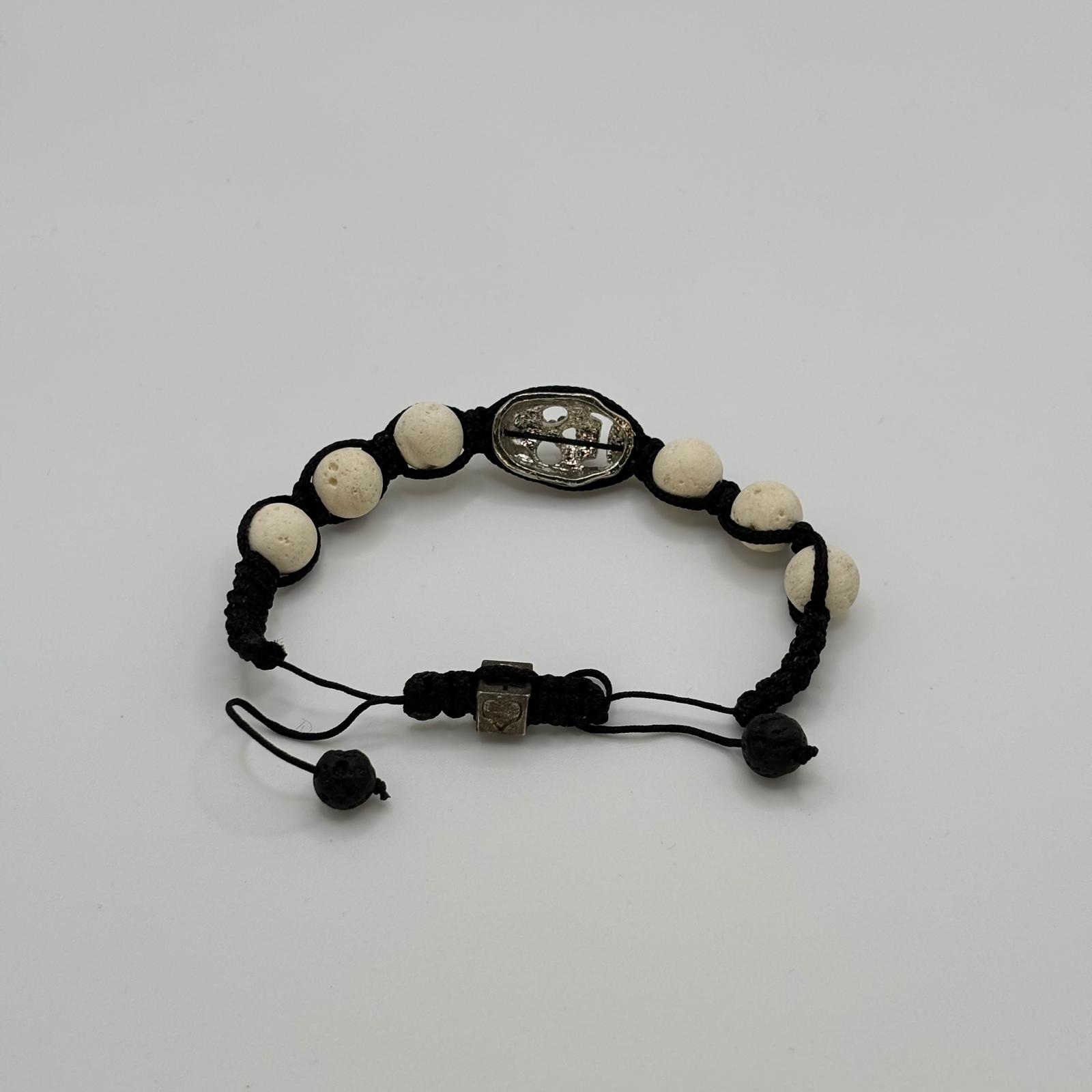 Închidere Ajustabilă: Sistemul de închidere cu nod culisant permite reglarea mărimii pe orice încheietură, fiind finisat la capete cu două mărgele din rocă vulcanică neagră pentru un detaliu estetic complet.