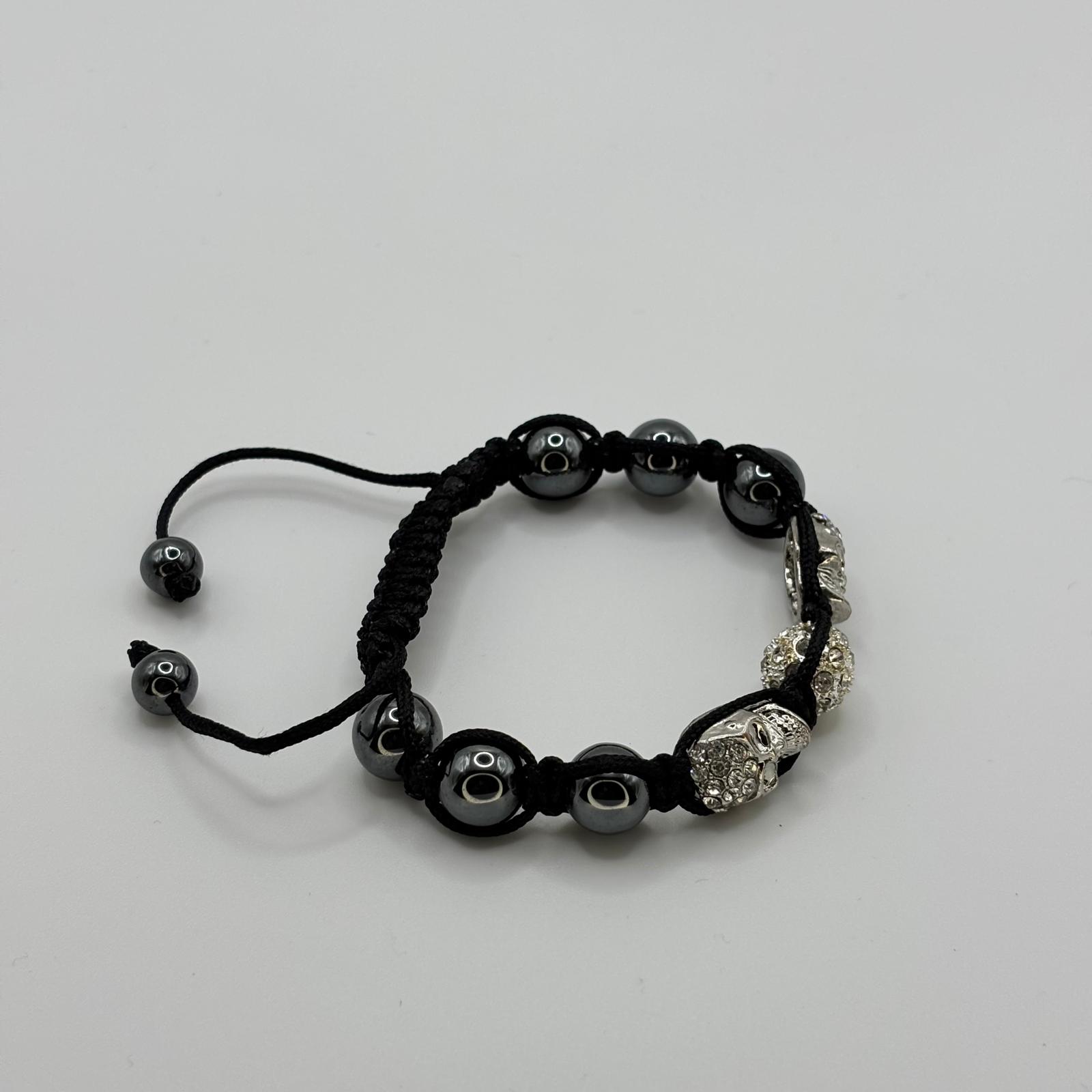 Mărgele Negre Mate: Cureaua este realizată din mărgele sferice negre cu finisaj mat, care oferă un fundal sobru și pune în evidență strălucirea elementelor metalice.