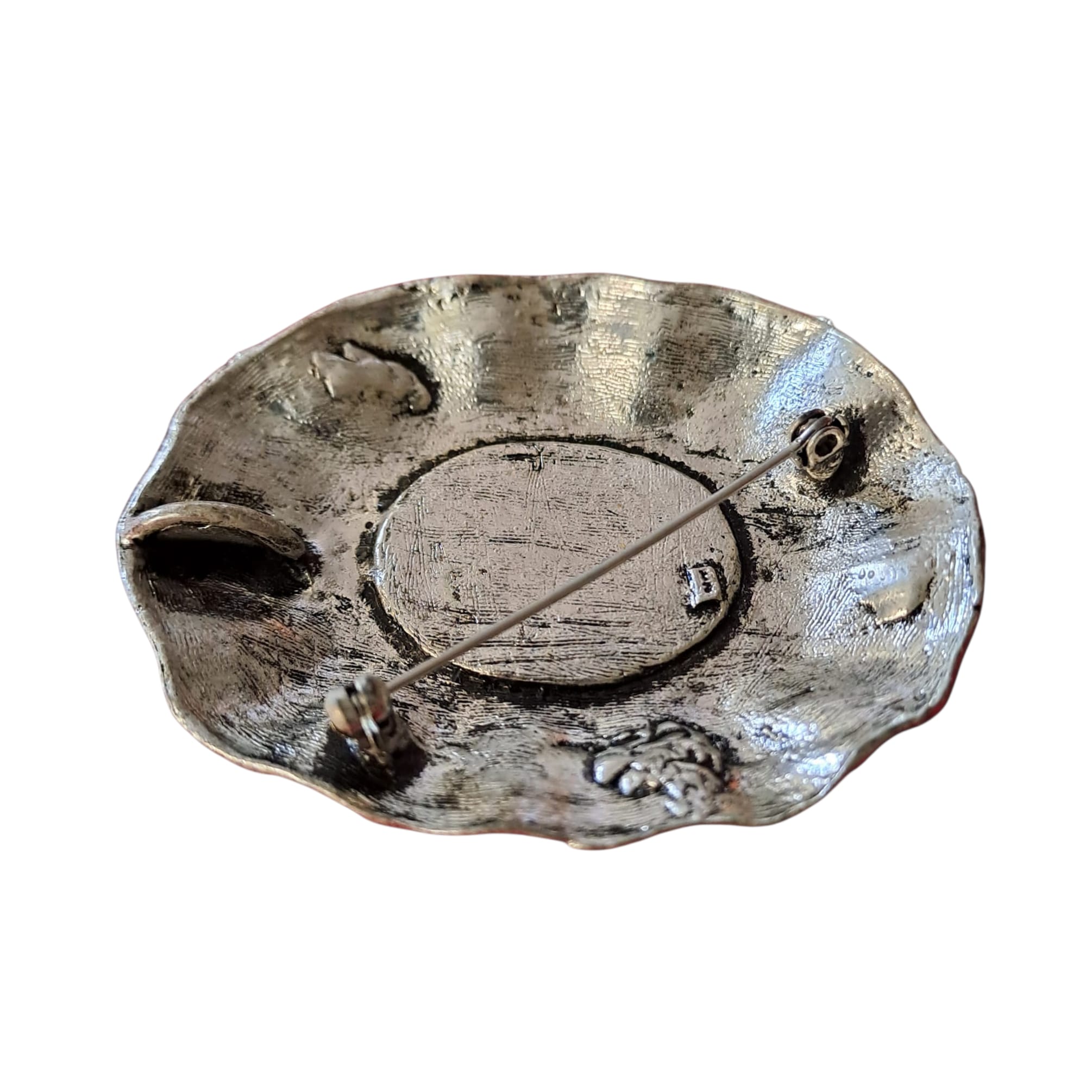 Brosă/Pandantiv Hibrid: Statement Ovală cu Design Brutalist Modernist și Cabochon Gri