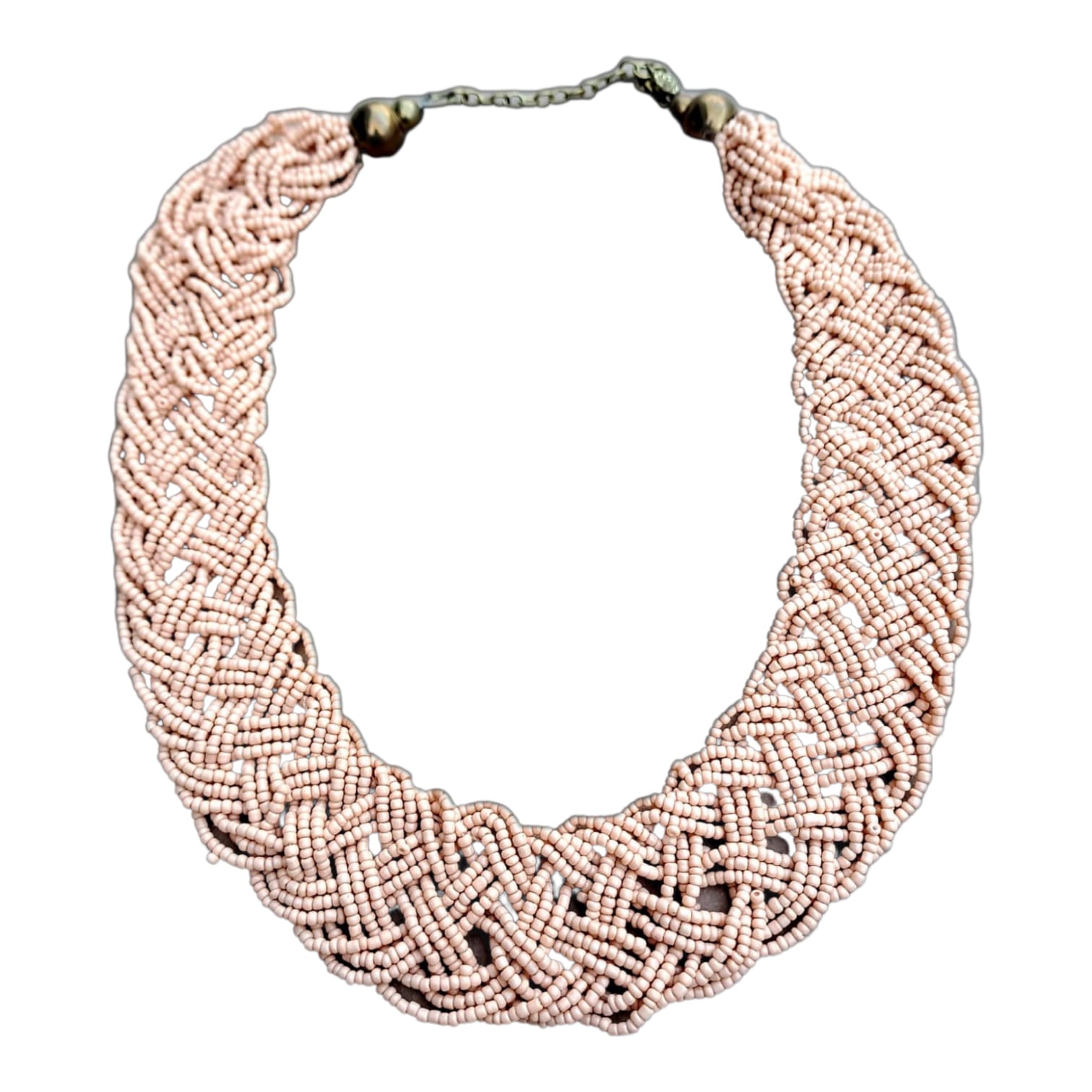 Adăugați un plus de eleganță și culoare oricărei ținute cu acest colier statement impresionant, realizat din multiple șiraguri de mărgele de nisip. Designul său intricate, împletit manual, captează atenția instantaneu.