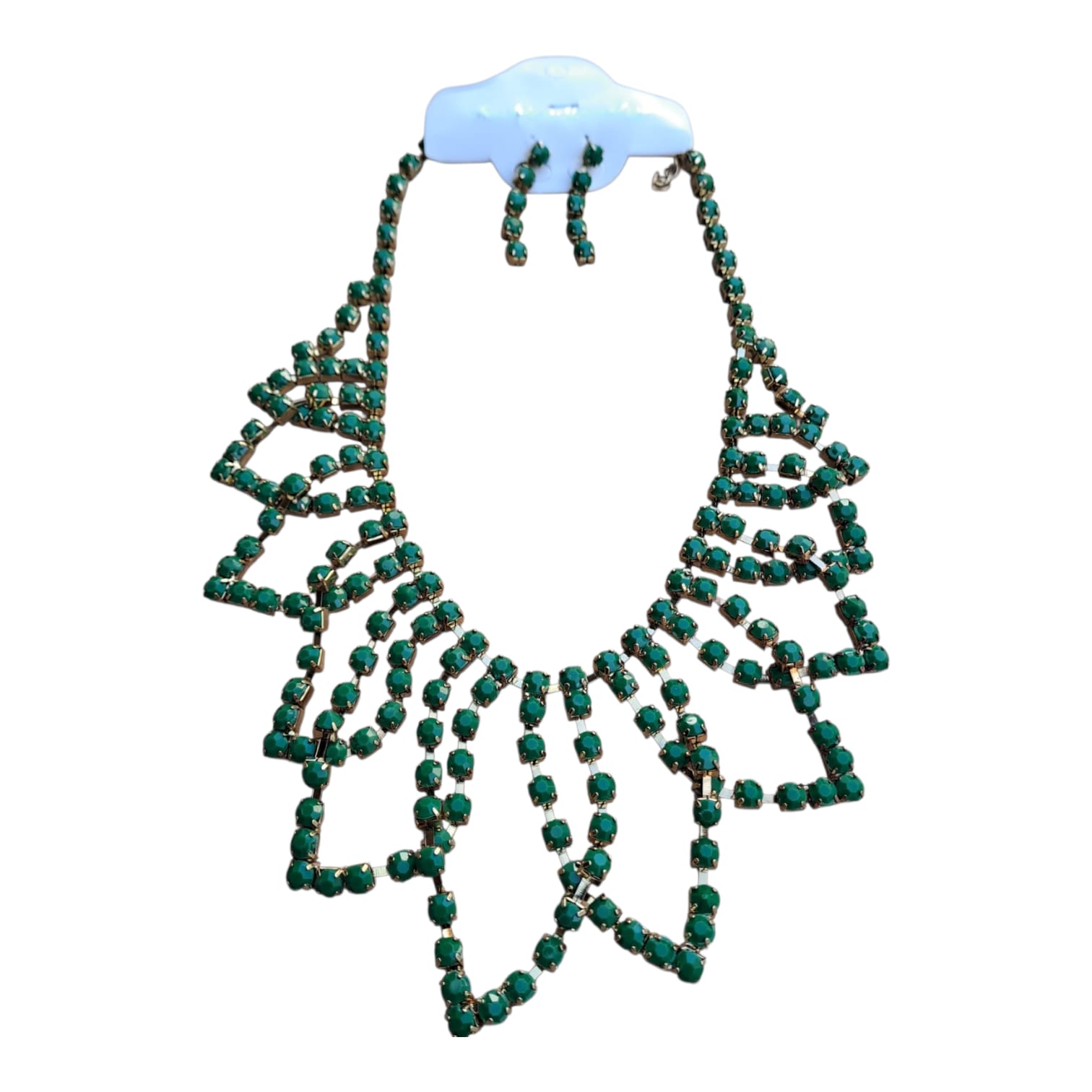 Set colier si cercei statement cu strasuri verzi – design fluid