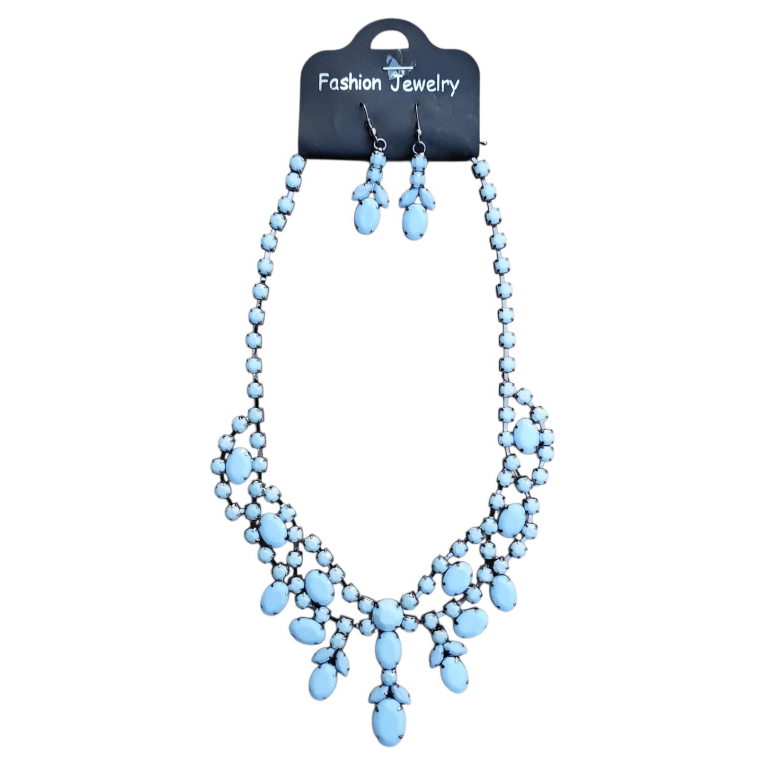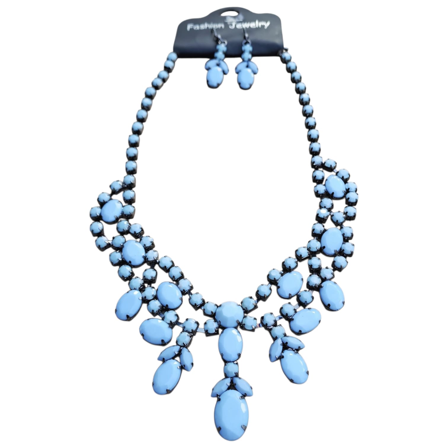 Set colier si cercei statement cu strasuri bleo – design fluid