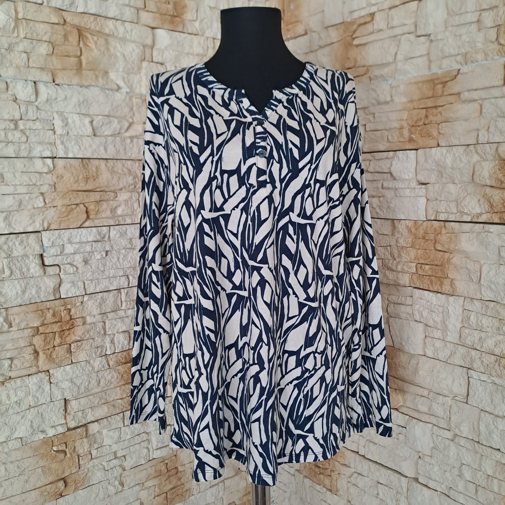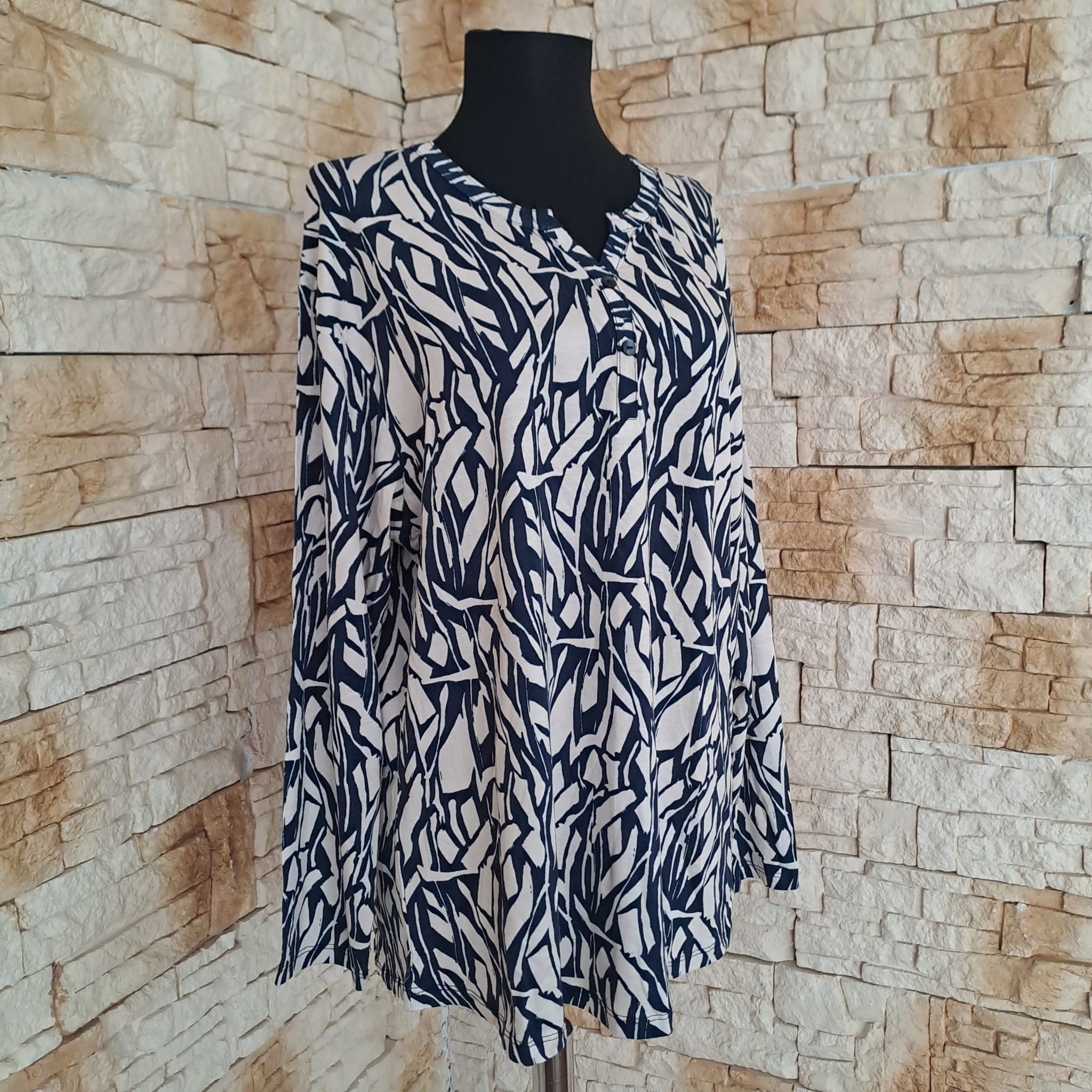 Bluza cu motive geometrice albastre, cu maneca lunga din vascoza , perfecta pentru sezonul de toamna/iarna.