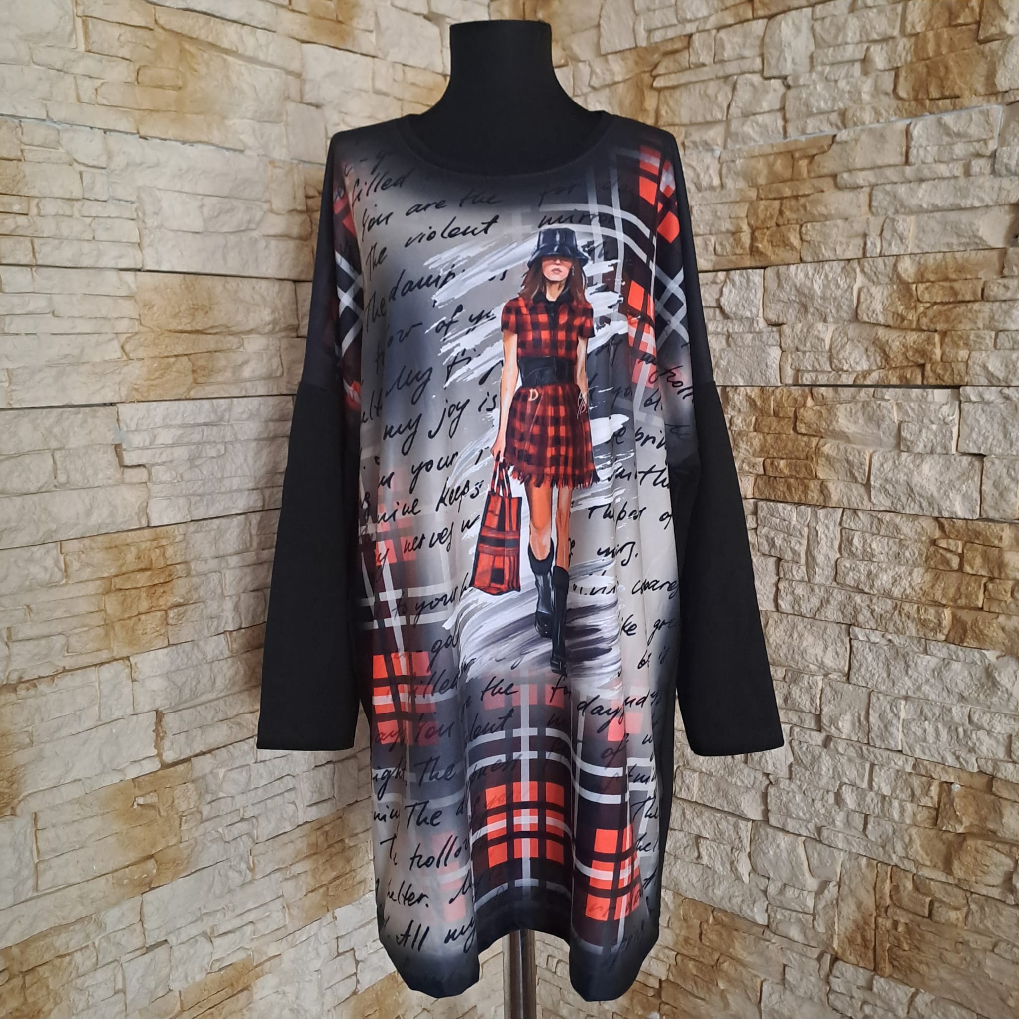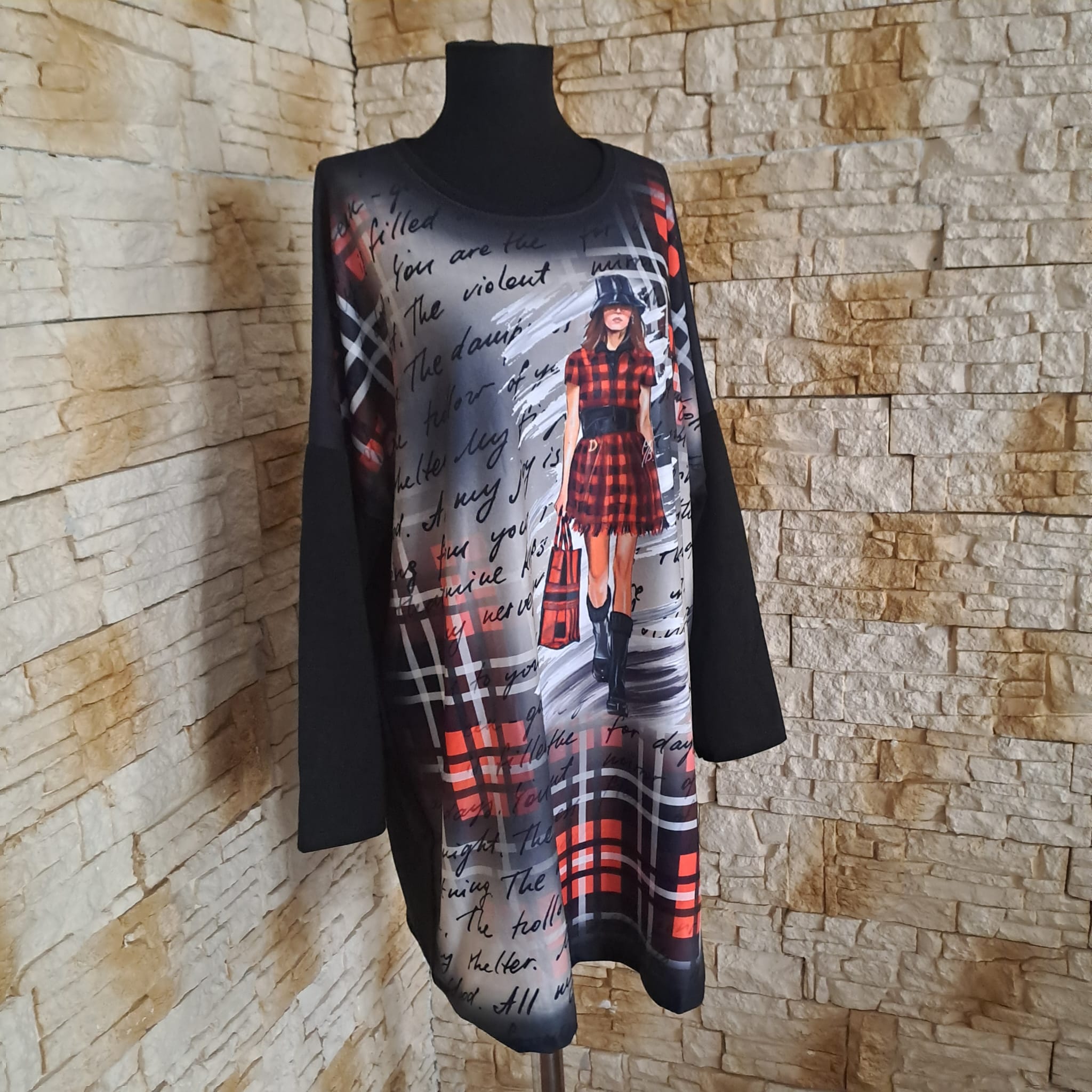 Tunică modernă, realizată din material plăcut la purtare, vâscoză cu puțin elastan, ce asigură lejeritate și o așezare frumoasă pe orice siluetă. Marimea este buna pentru doamne ce poarta marimile 52,54,56,58. Este potrivita pentru sezonul toamna /iarna.