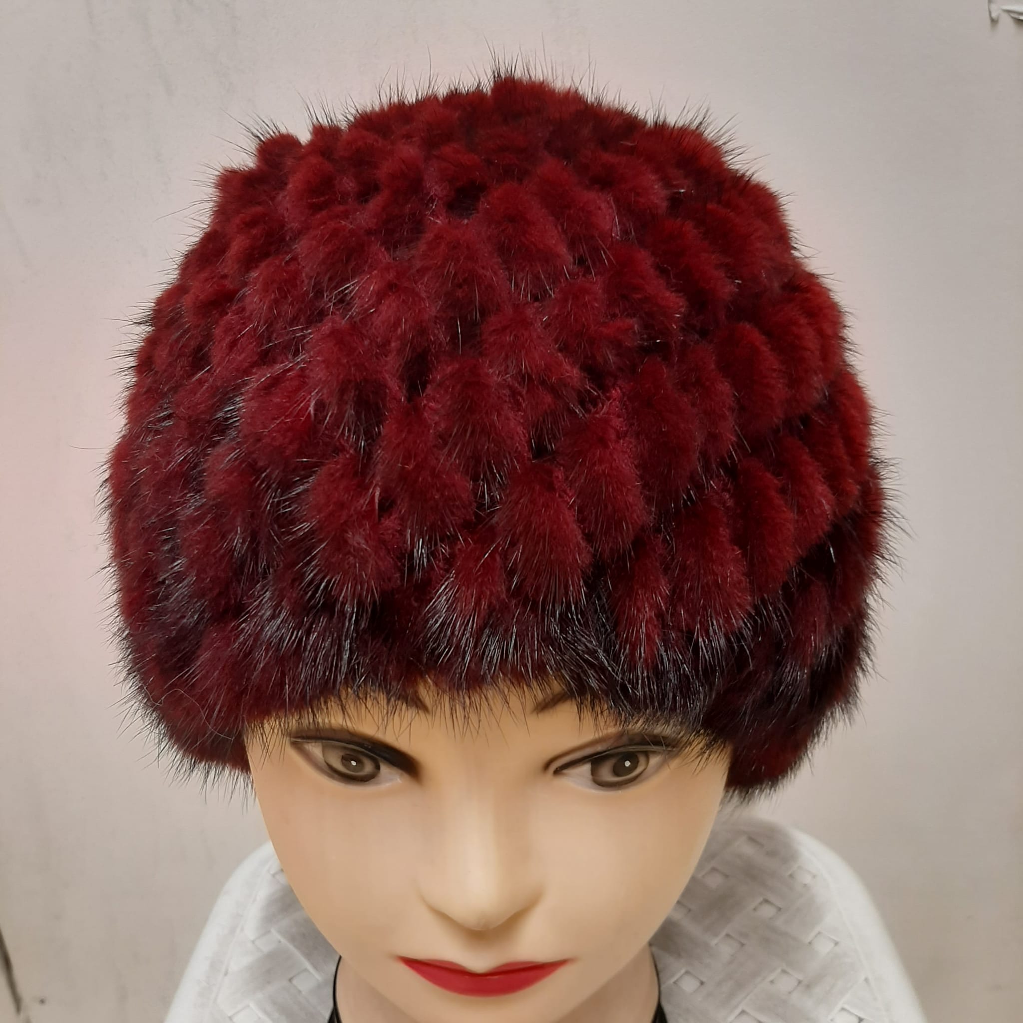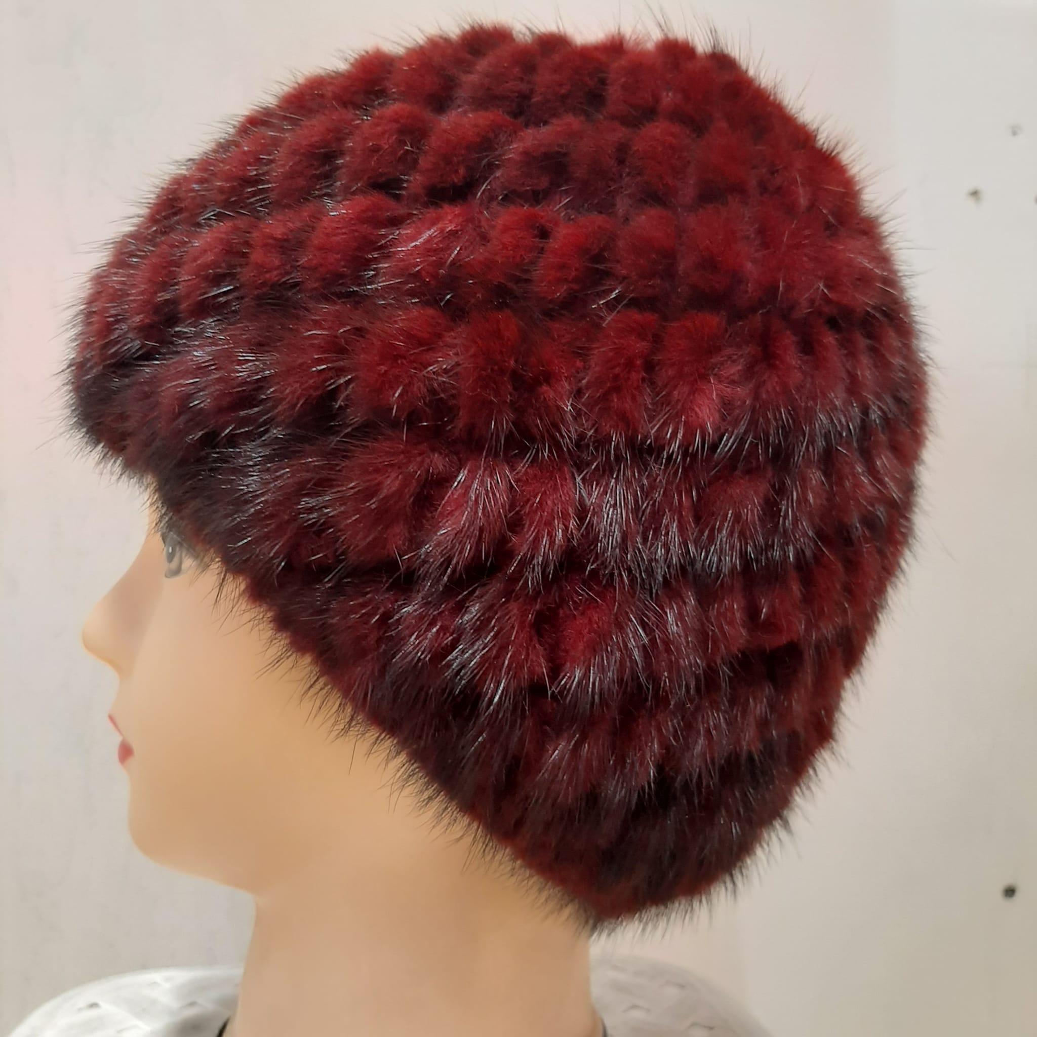 Caciula tricotata dubla cu aplicatii din blana naturala ( nurca).