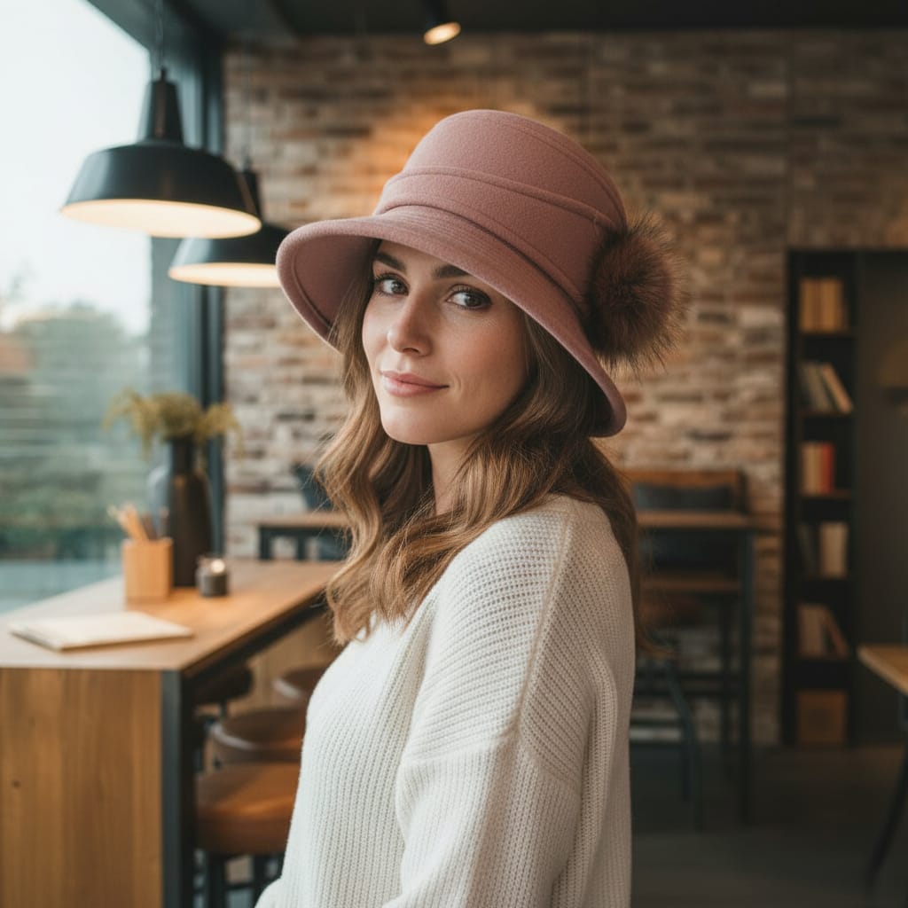 Este o pălărie tip cloche / pălărie elegantă de damă, cu: