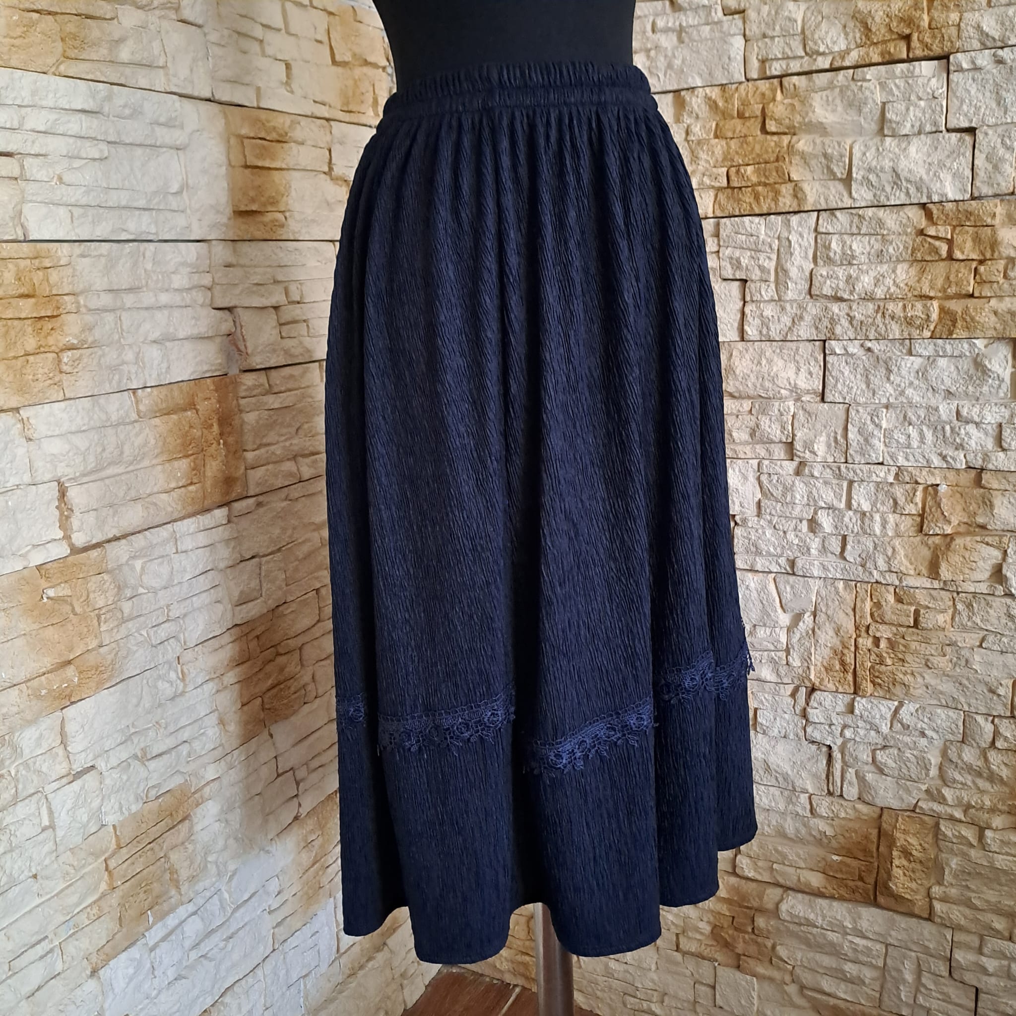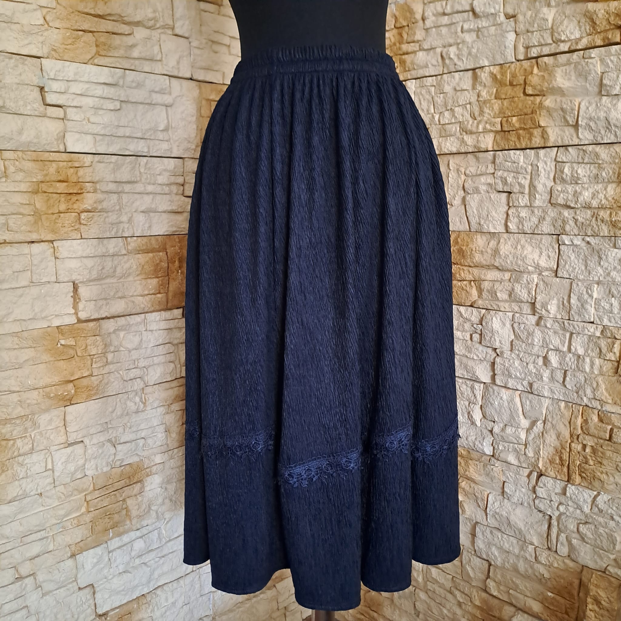 Fusta fond bleumarin cu aplicatii din dantela, ce are marime unica potrivita pentru masurile; 2XL,3XL,4XL,5XL,6XL