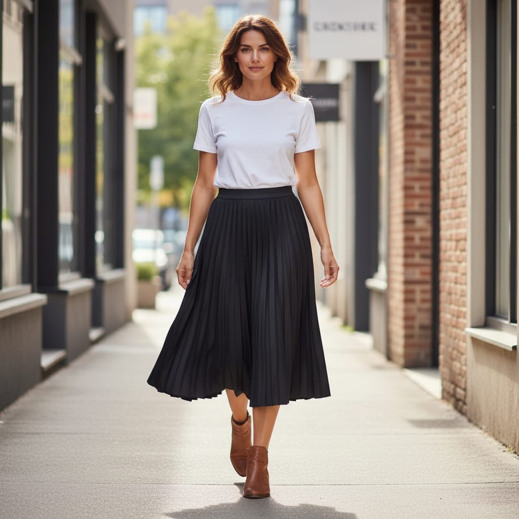 Fusta plisata fond mov ce are marime unica potrivita pentru masurile; L,XL,2XL.
