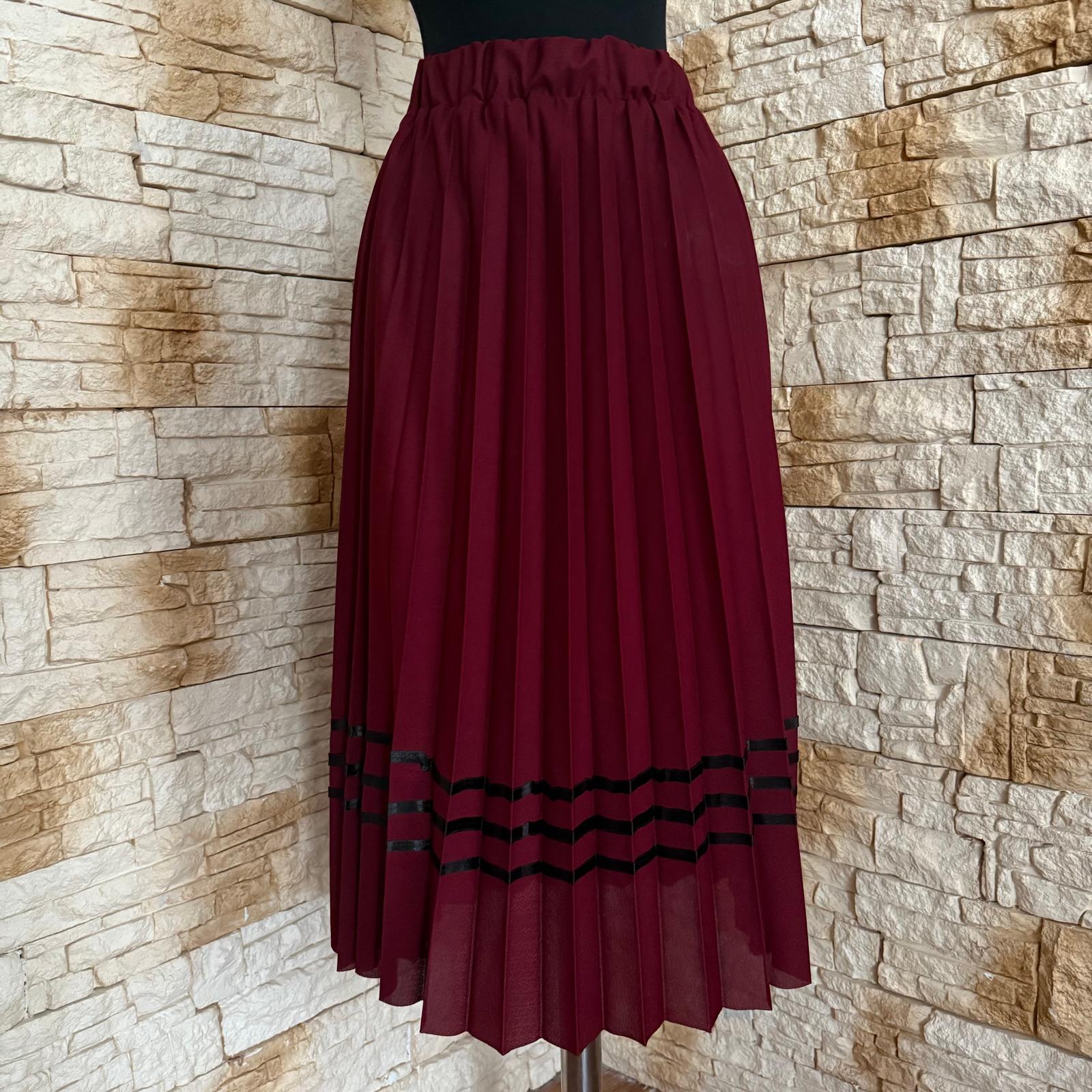 Fusta plisata fond grena ce are marime unica potrivita pentru masurile; S,M,L,XL. Este potrivita pentru sezonul de vara.