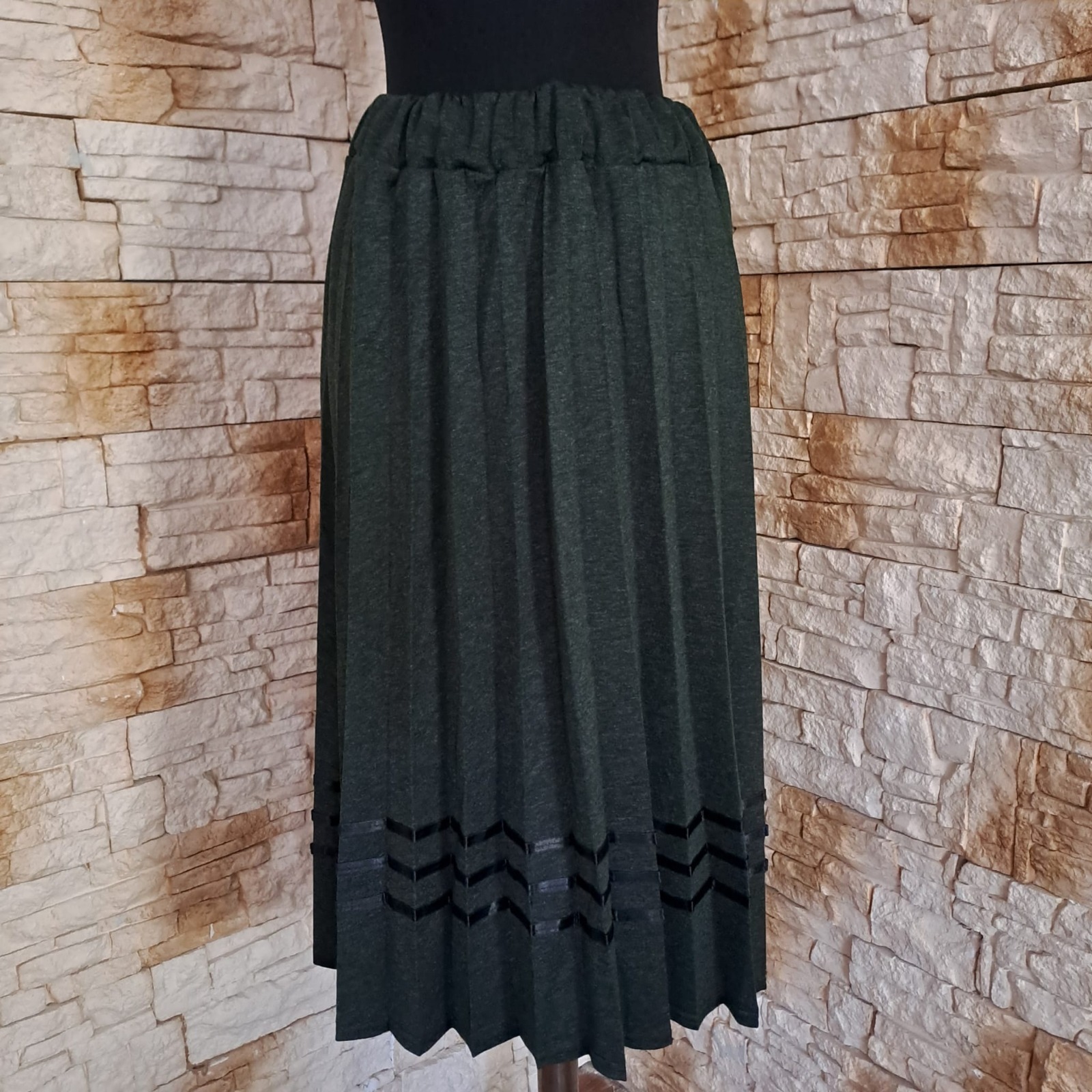 Fusta plisata fond verde ce are marime unica potrivita pentru masurile; S,M,L,XL. Este potrivita pentru sezonul toamna/iarna.