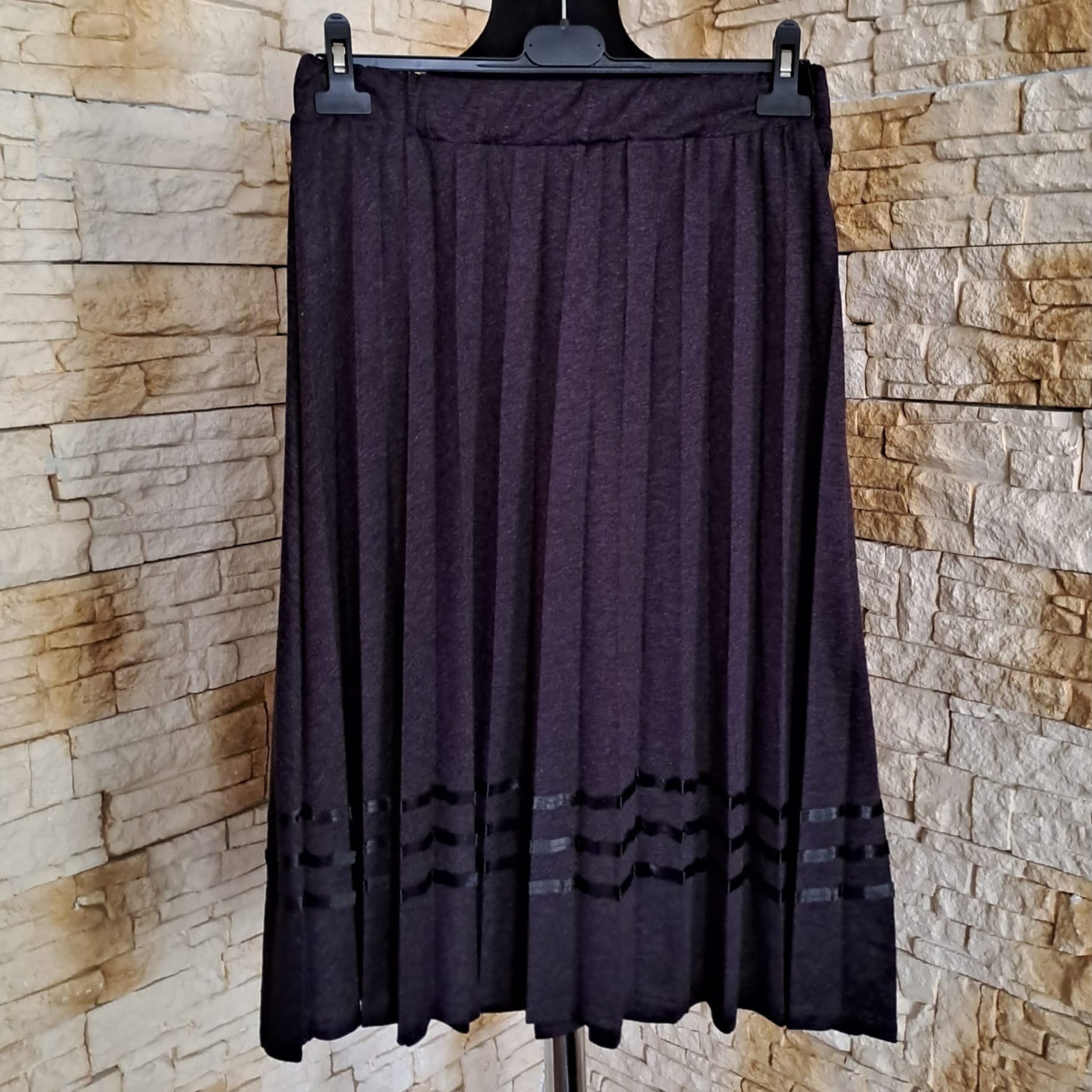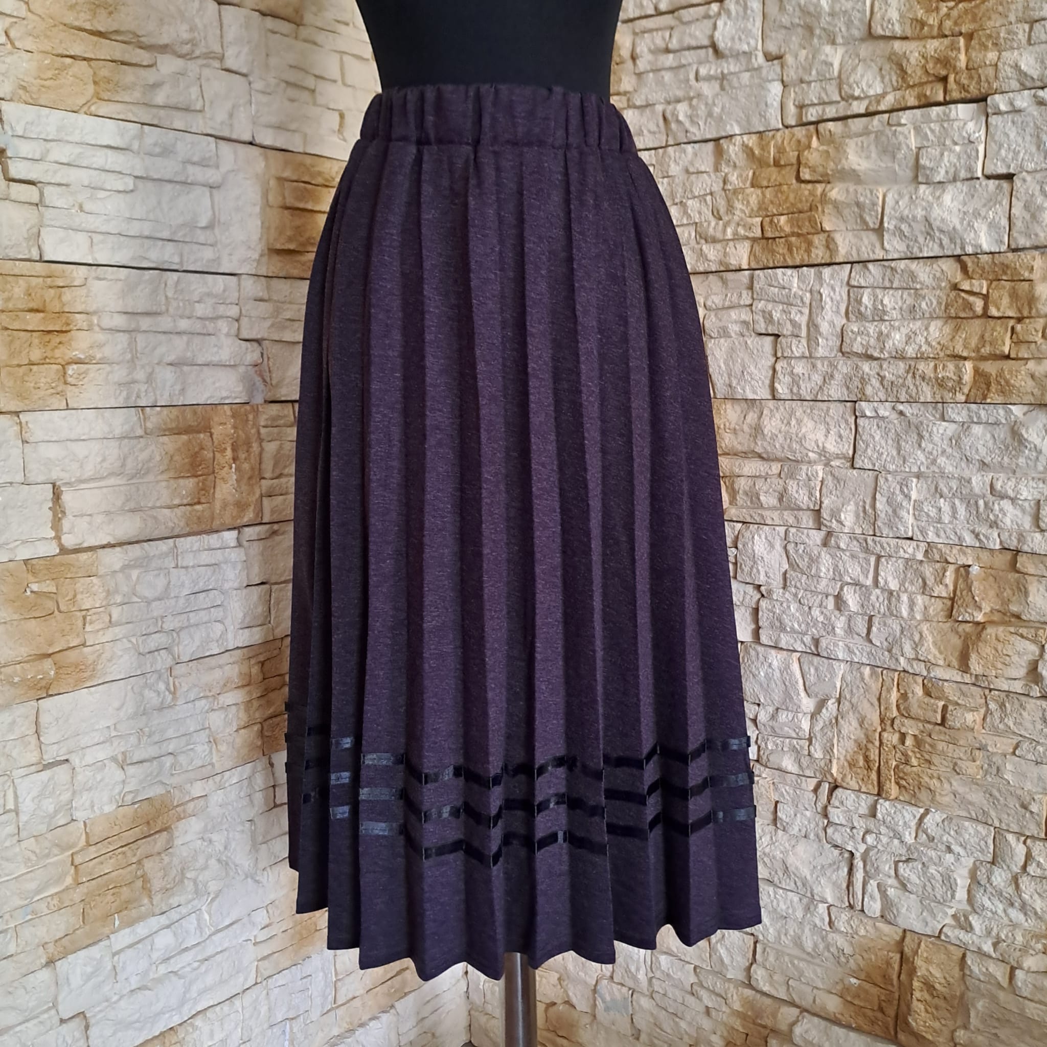 Fusta plisata fond mov ce are marime unica potrivita pentru masurile; S,M,L,XL. Este potrivita pentru sezonul toamna/iarna.