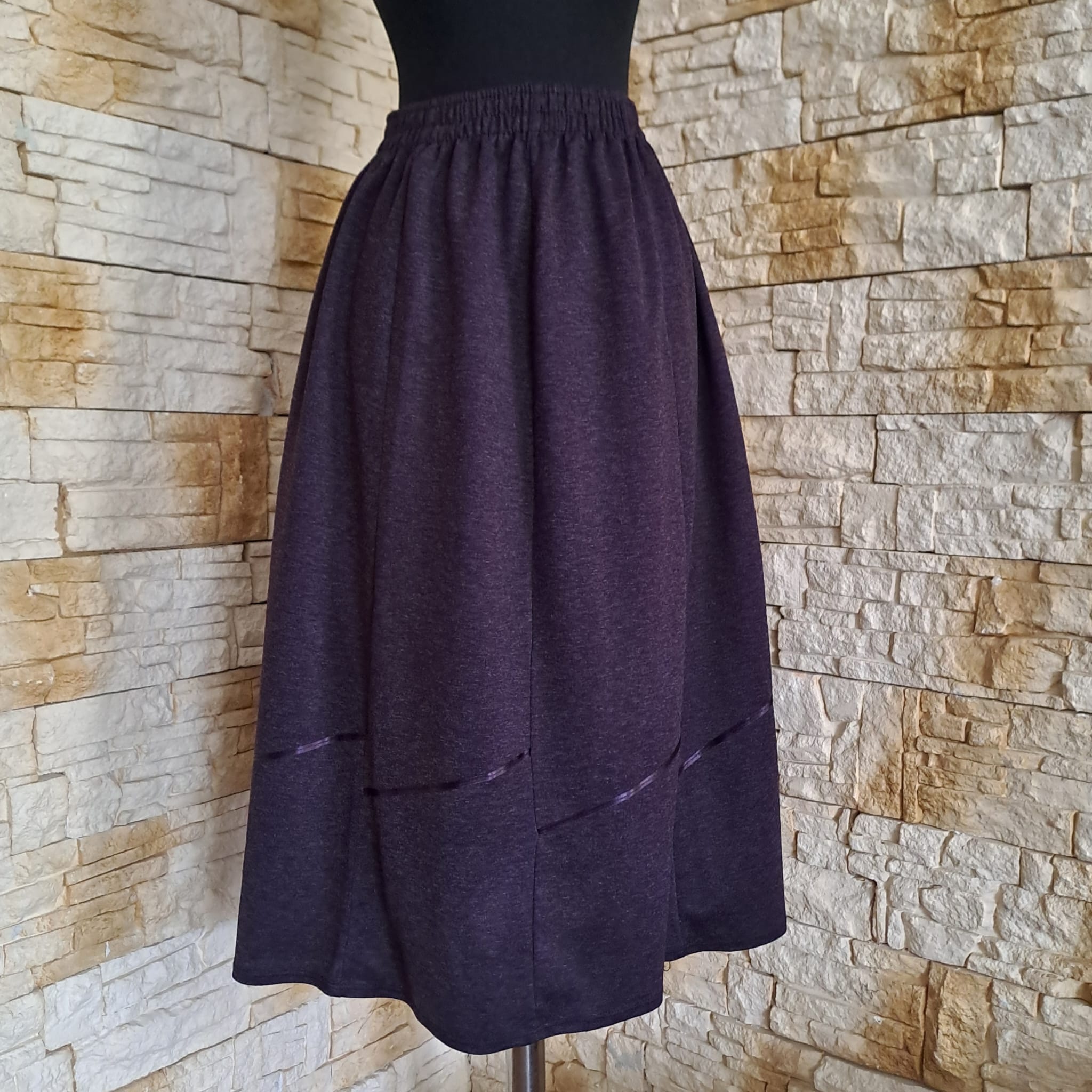 Fusta fond mov ce are marime unica potrivita pentru masurile; S,M,L,XL. Este potrivita pentru sezonul toamna/iarna.