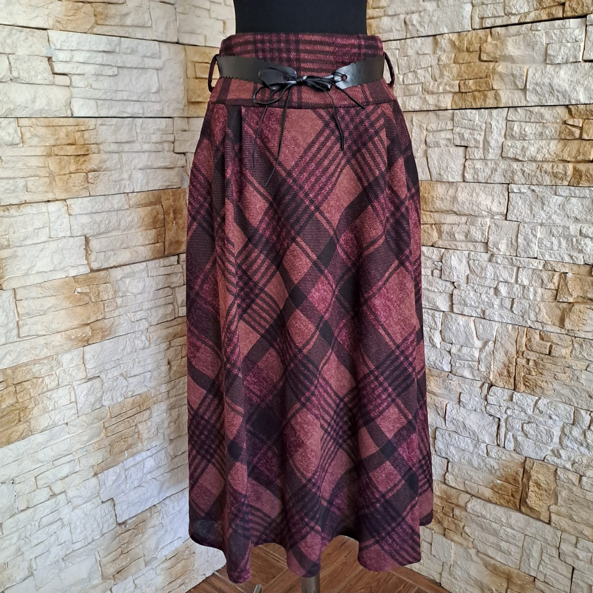 🖤 Fustă în carouri cu buzunare și curea – talie reglabila.