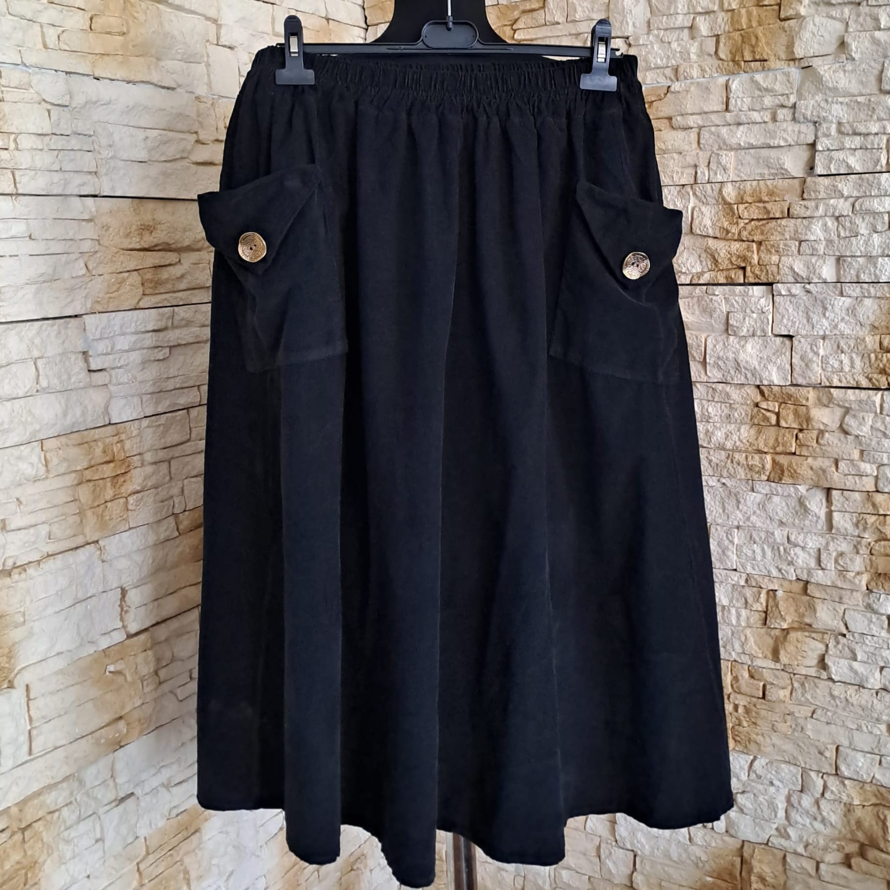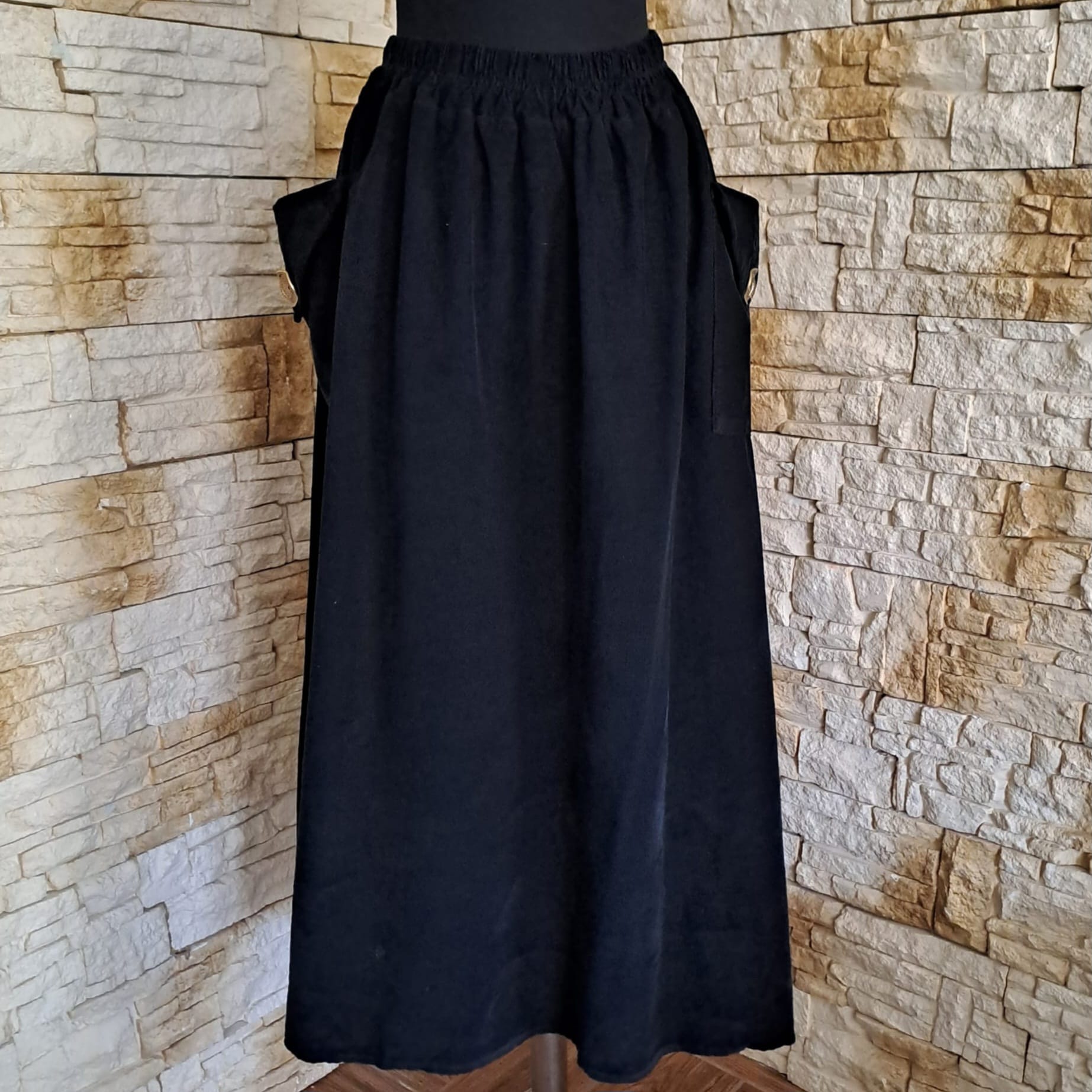 💚 Fustă din raiat cu buzunare mari – talie elastică, neagra