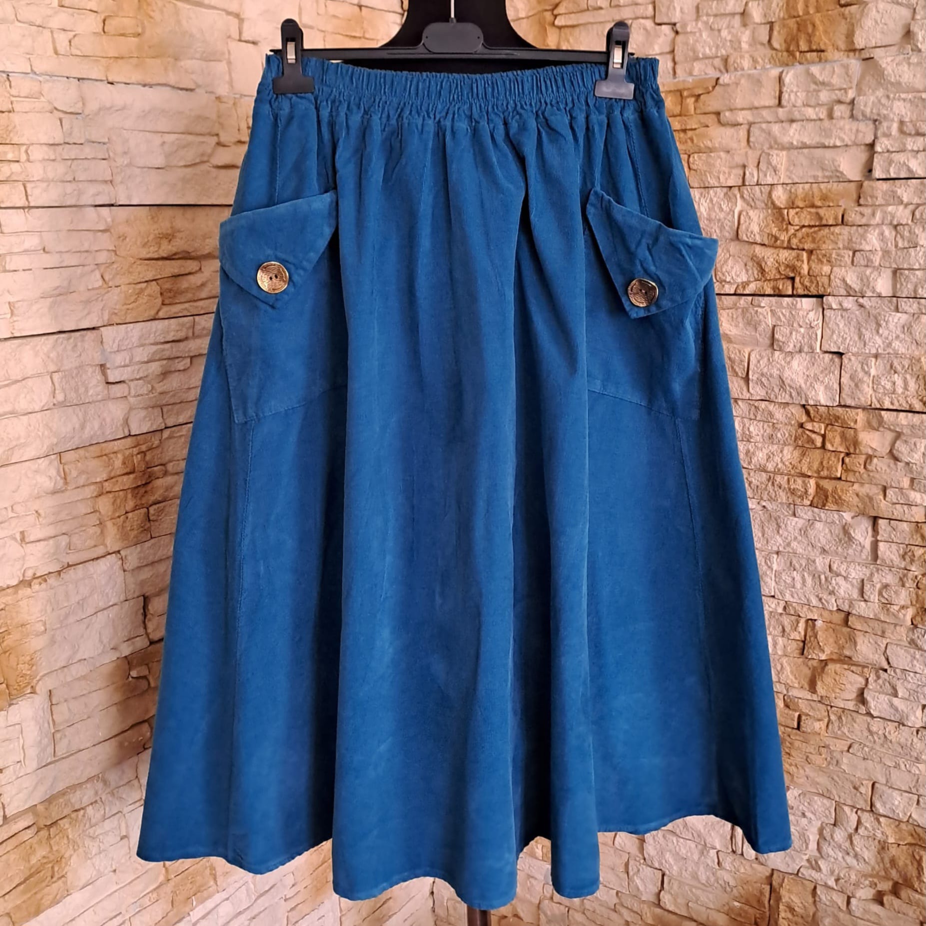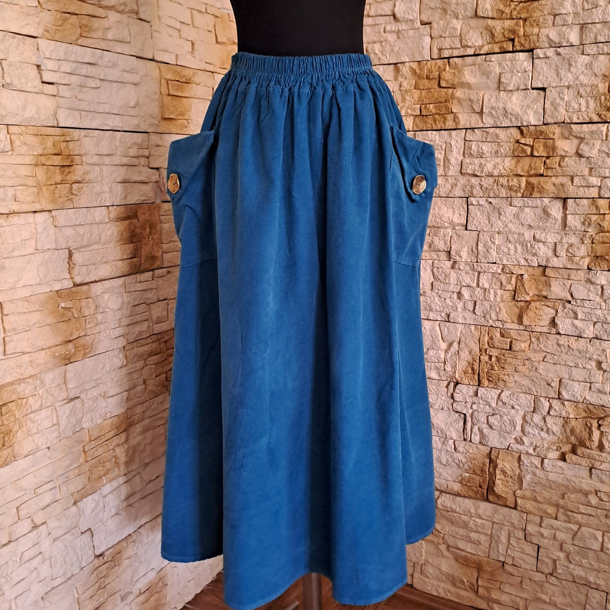 💚 Fustă din raiat cu buzunare mari – talie elastică, albastru