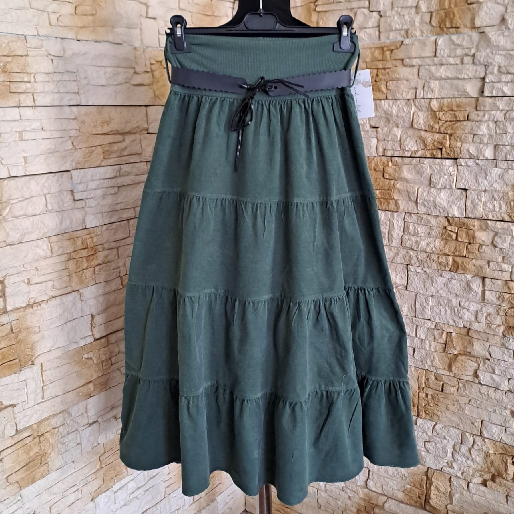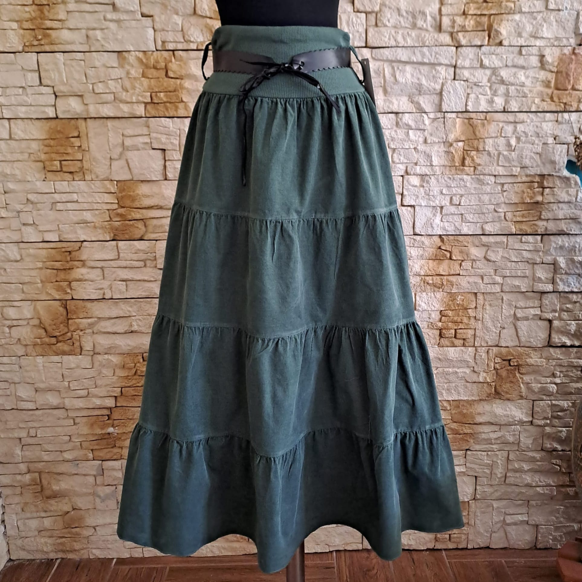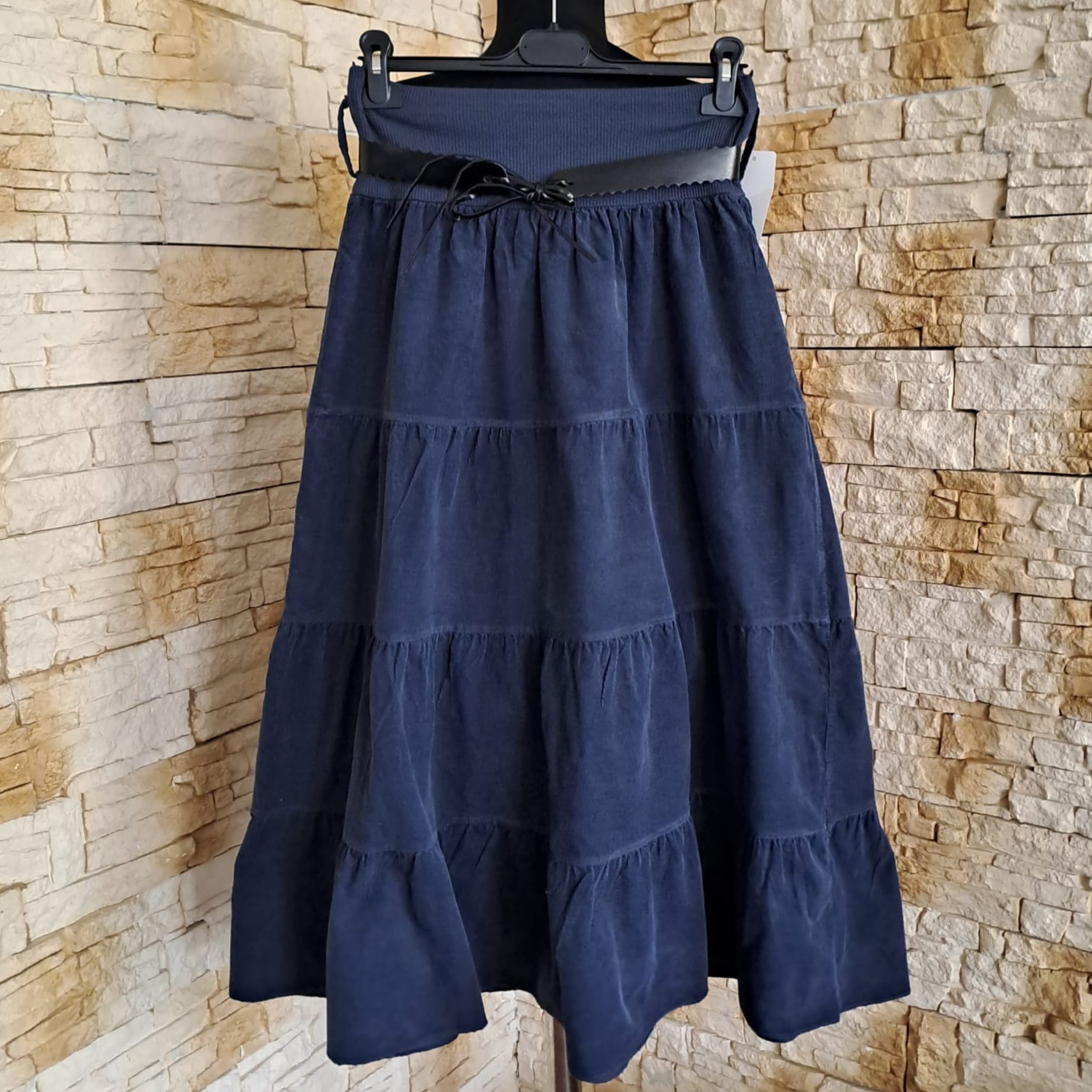 Fusta este disponibilă în trei nuanțe elegantealbastruverde și maro, culori ușor de asortat, inspirate din tonuri naturale.