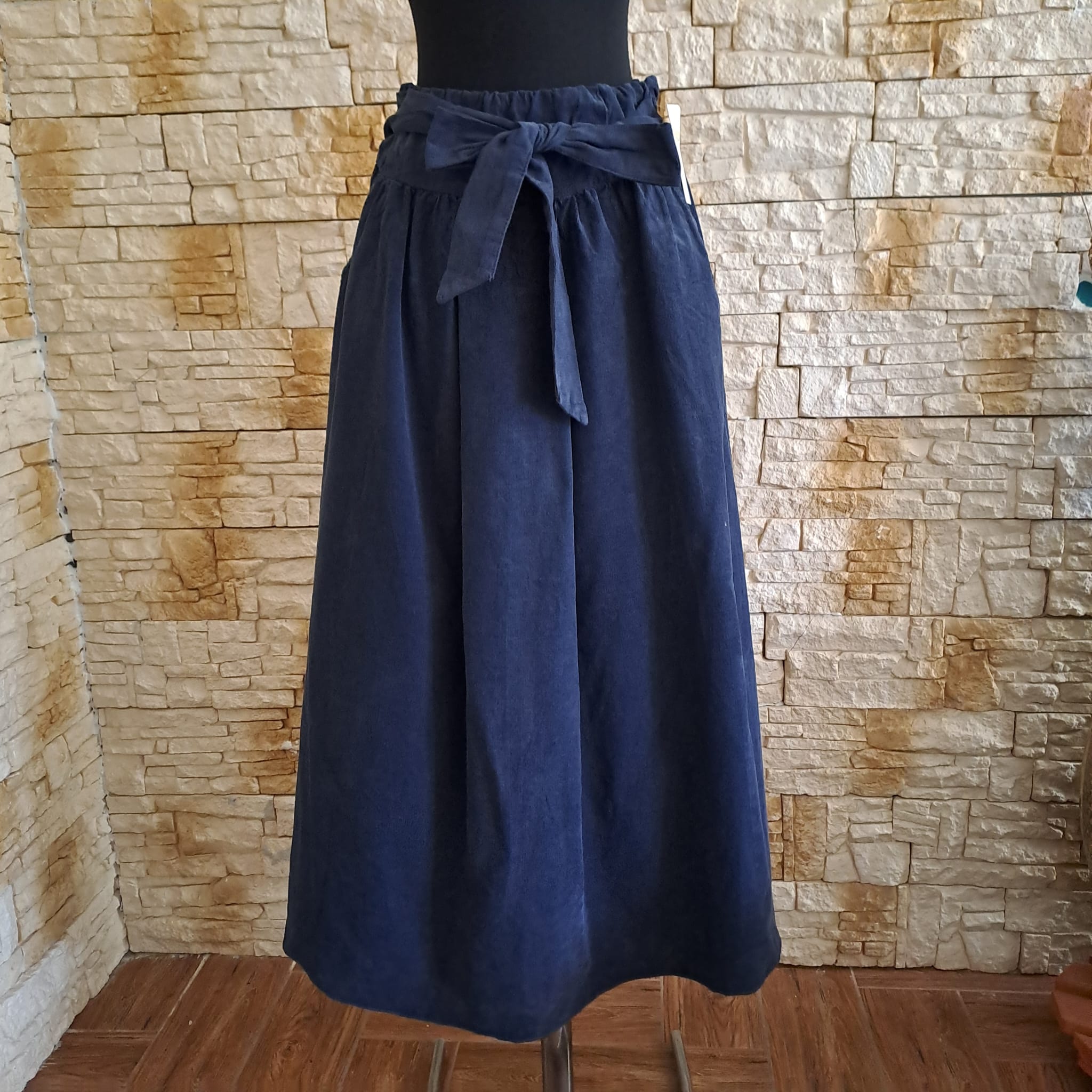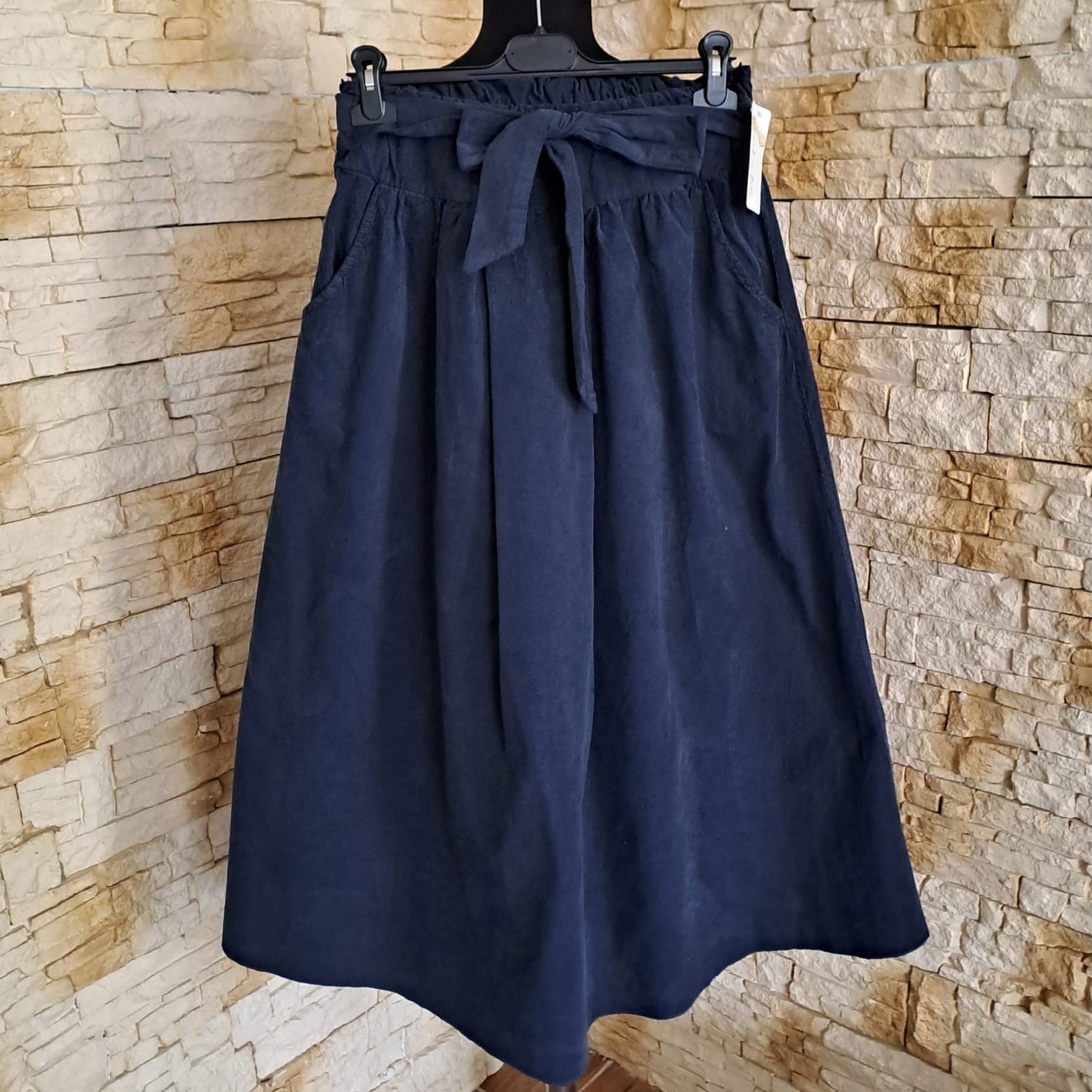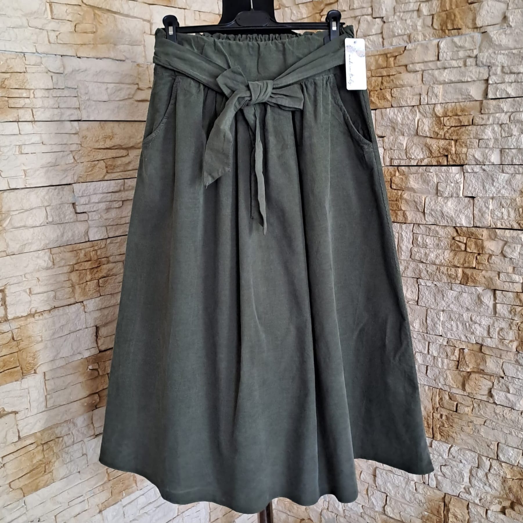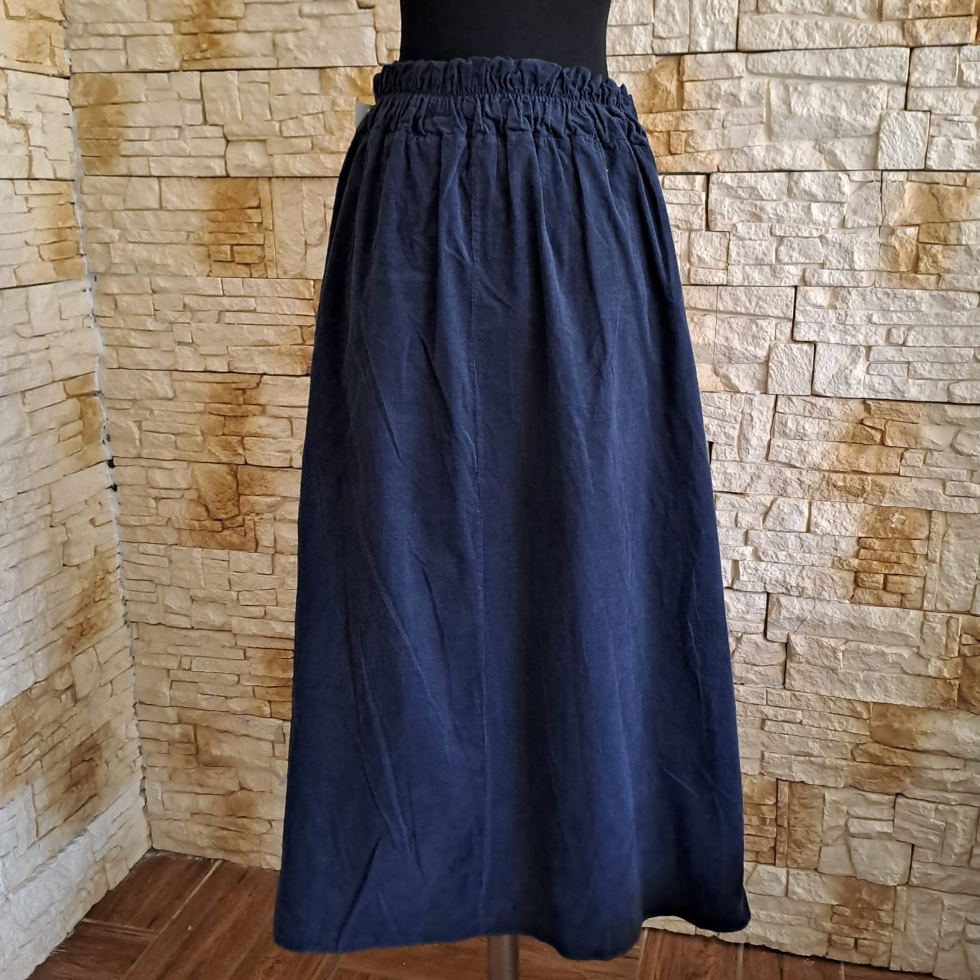 Această fustă din raiat catifelat, realizată din bumbac 100% natural, îmbină eleganța cu funcționalitatea, oferind un look lejer și rafinat. Croiala în A avantajează silueta, iar buzunarele laterale adaugă un plus de practic și stil. Este disponibila in doua variante de culori , albastru si verde.