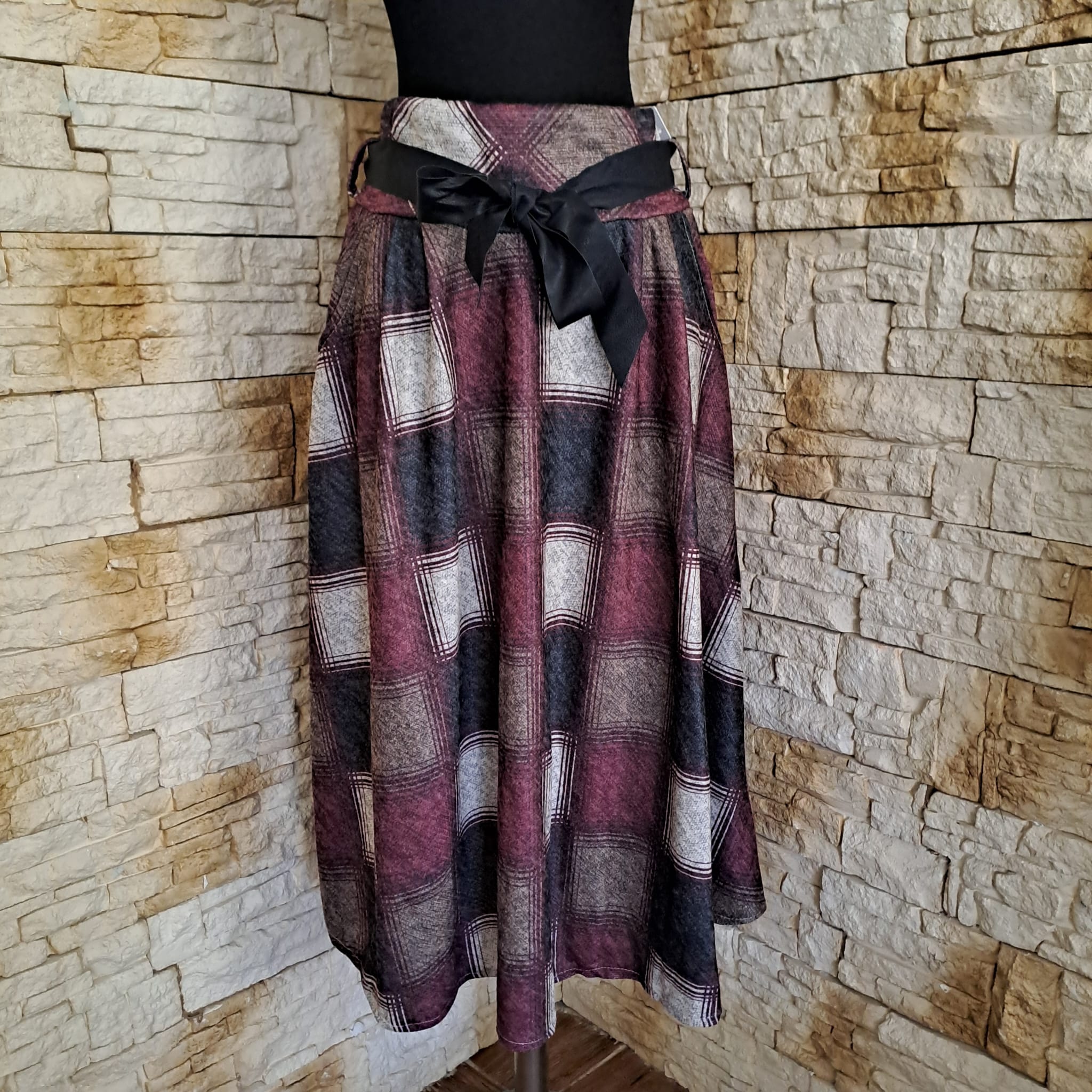 🖤 Fustă în carouri cu buzunare și curea – talie reglabila.