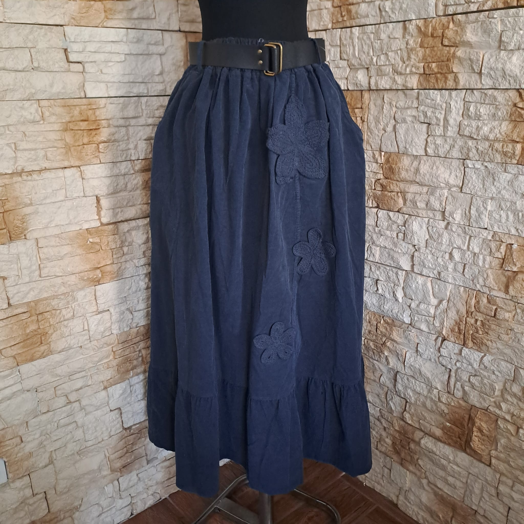 🤎 Fustă din raiat cu aplicații florale și curea – talie reglabilă
