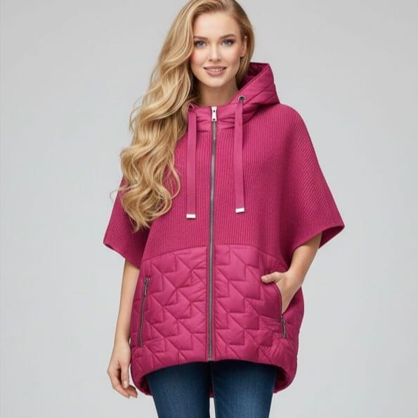 Această piesă vestimentară este o jachetă hibrid modernă de tip poncho sau vestă cu mânecă scurtă, ideală pentru ținute casual chic în perioadele de tranziție. Confort și eleganță într-o piesă versatilă, special creată pentru siluetele Plus Size.