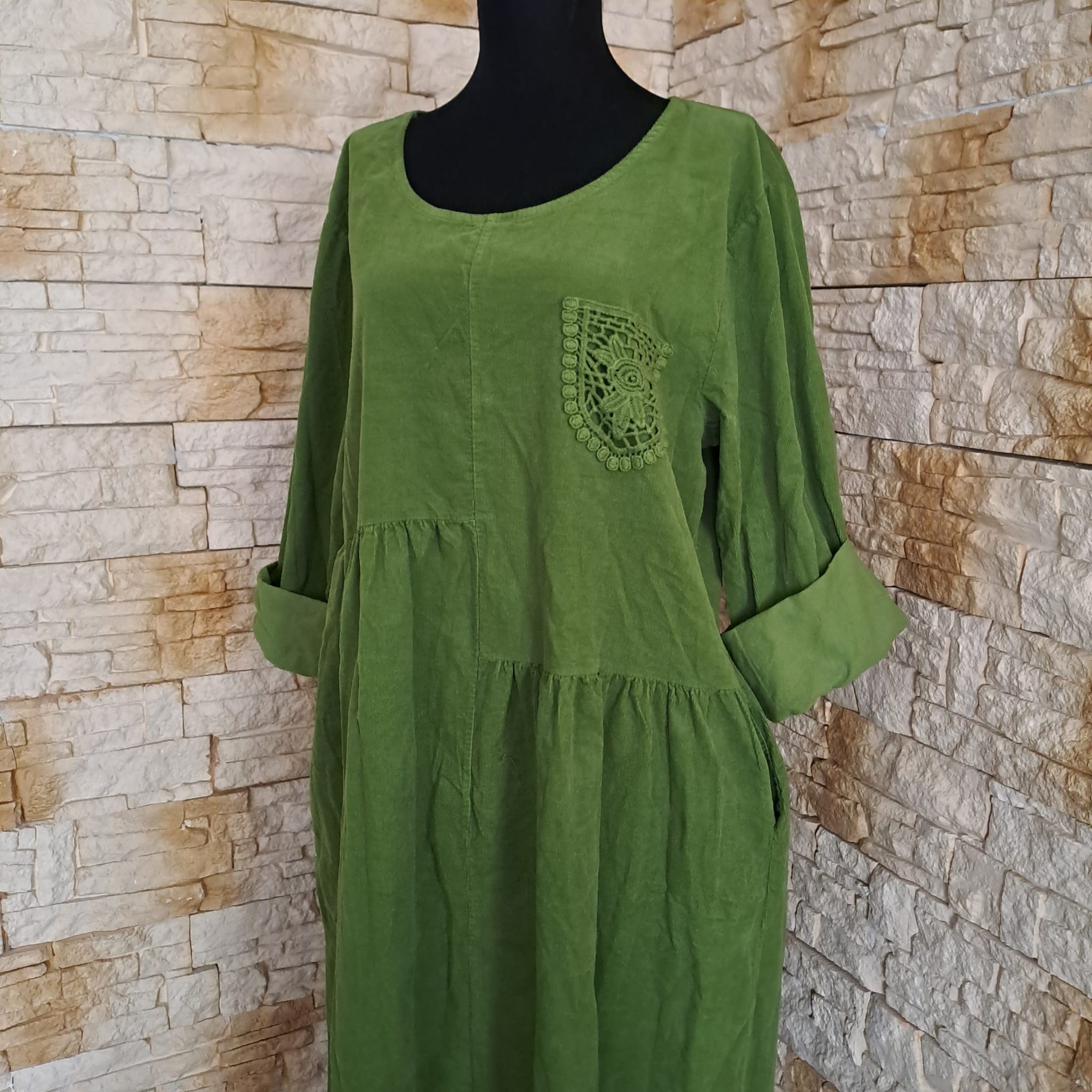 Rochie din raiat verde masliniu – lejeră și confortabilă
