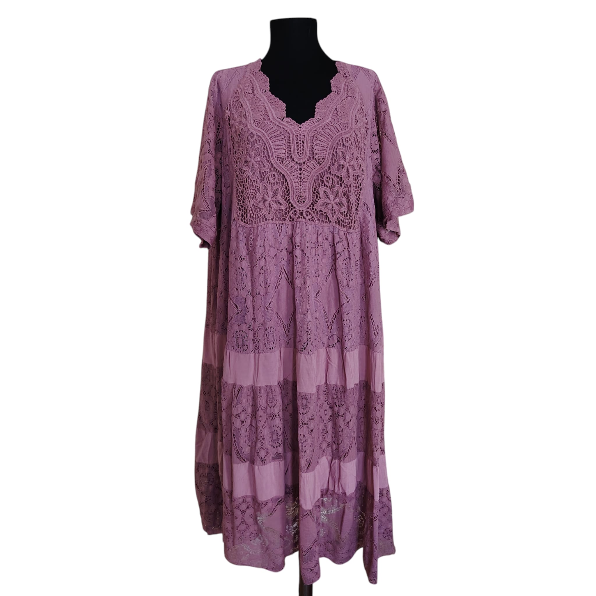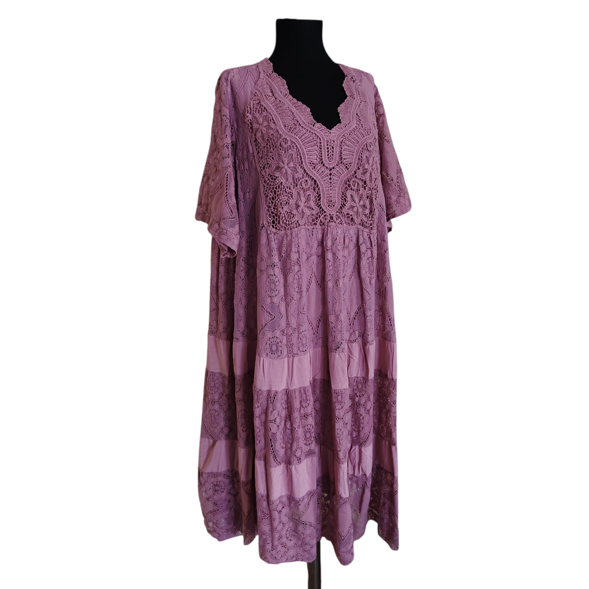 Rochie Maxi Boho-Chic din Bumbac și Vâscoză –  lila prăfuit