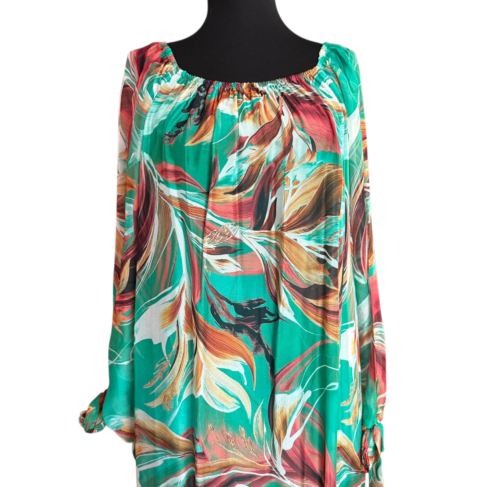 Explorează eleganța boemă cu această rochie maxi excepțională, o piesă vestimentară care combină confortul cu un stil sofisticat. Perfectă pentru o ocazie specială sau pentru a adăuga un accent original ținutei tale de zi cu zi, rochia se remarcă prin croiala sa fluidă și imprimeul vibrant.