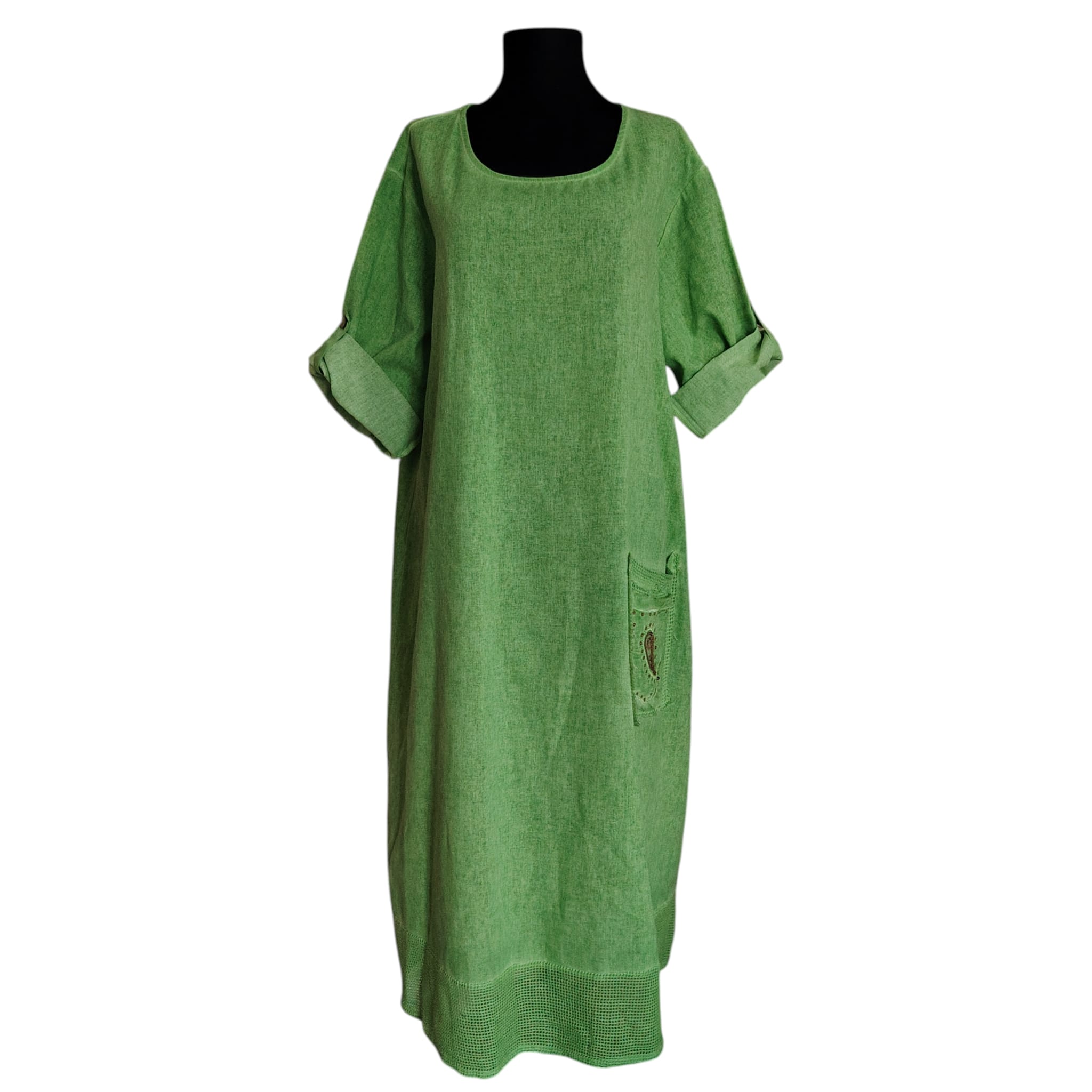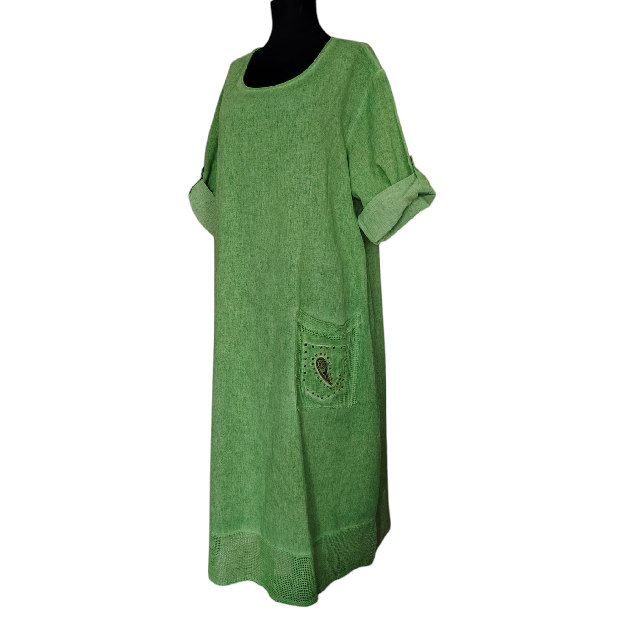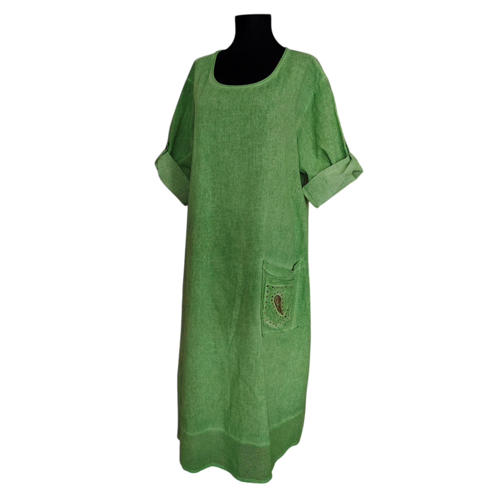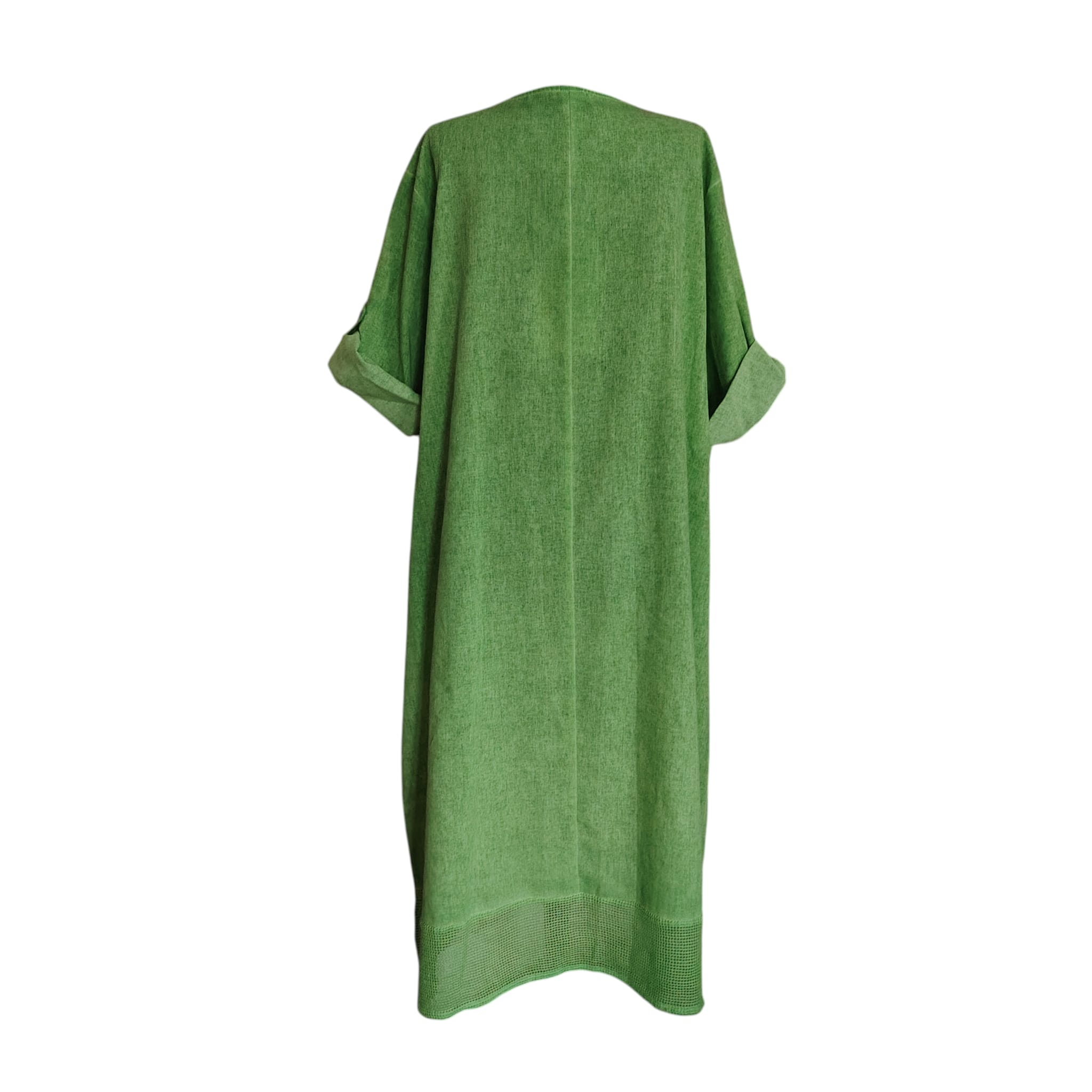 Rochie Midi Verde Fistic – Textură Naturală și Detalii Artizanale