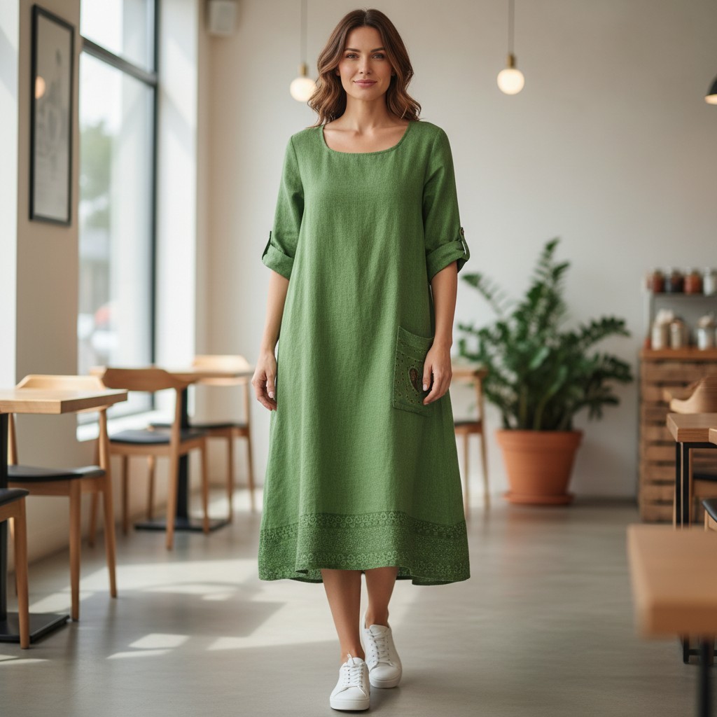 Sfat de styling: Poart-o cu accesorii în nuanțe pământii (maro, teracotă) pentru un look natural și armonios.