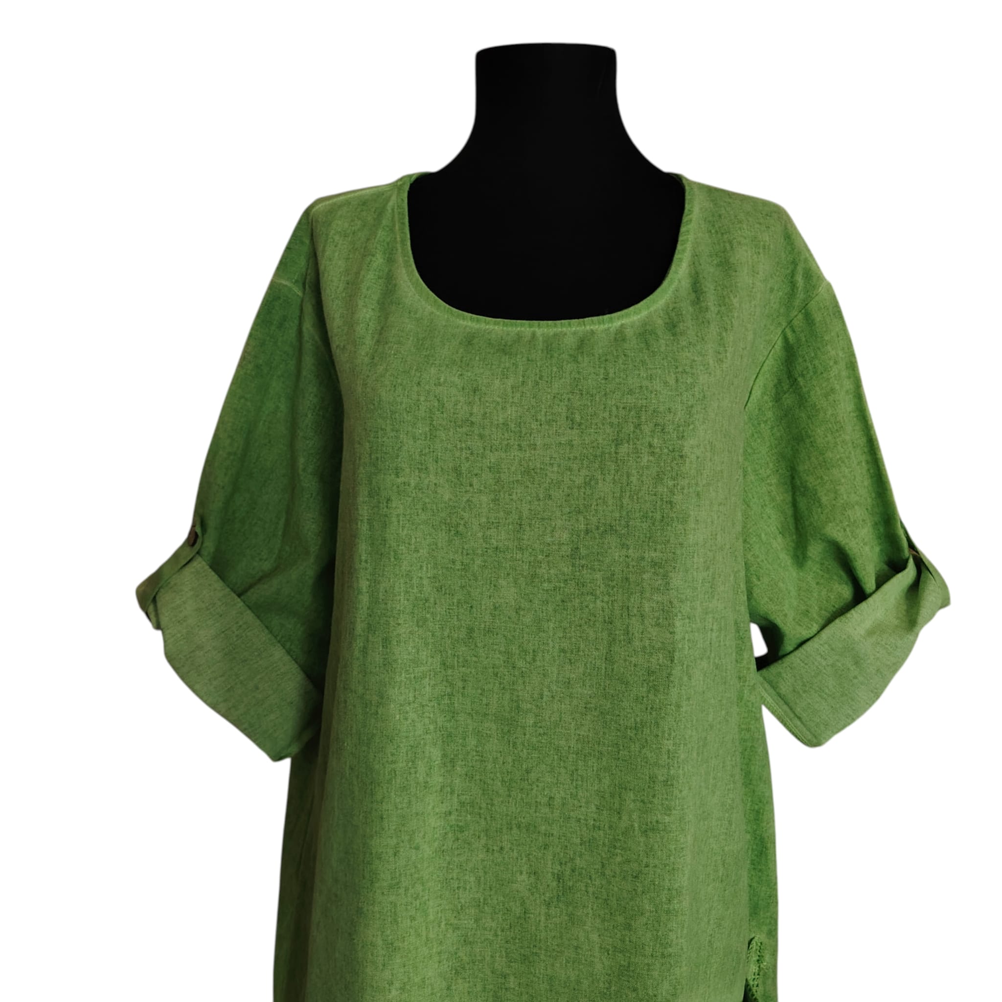 - Croială „Lagenlook”: Designul cu volum în zona șoldurilor și mâneci cu manșetă întoarsă oferă o libertate de mișcare totală, fiind potrivită pentru diverse tipuri de siluetă.