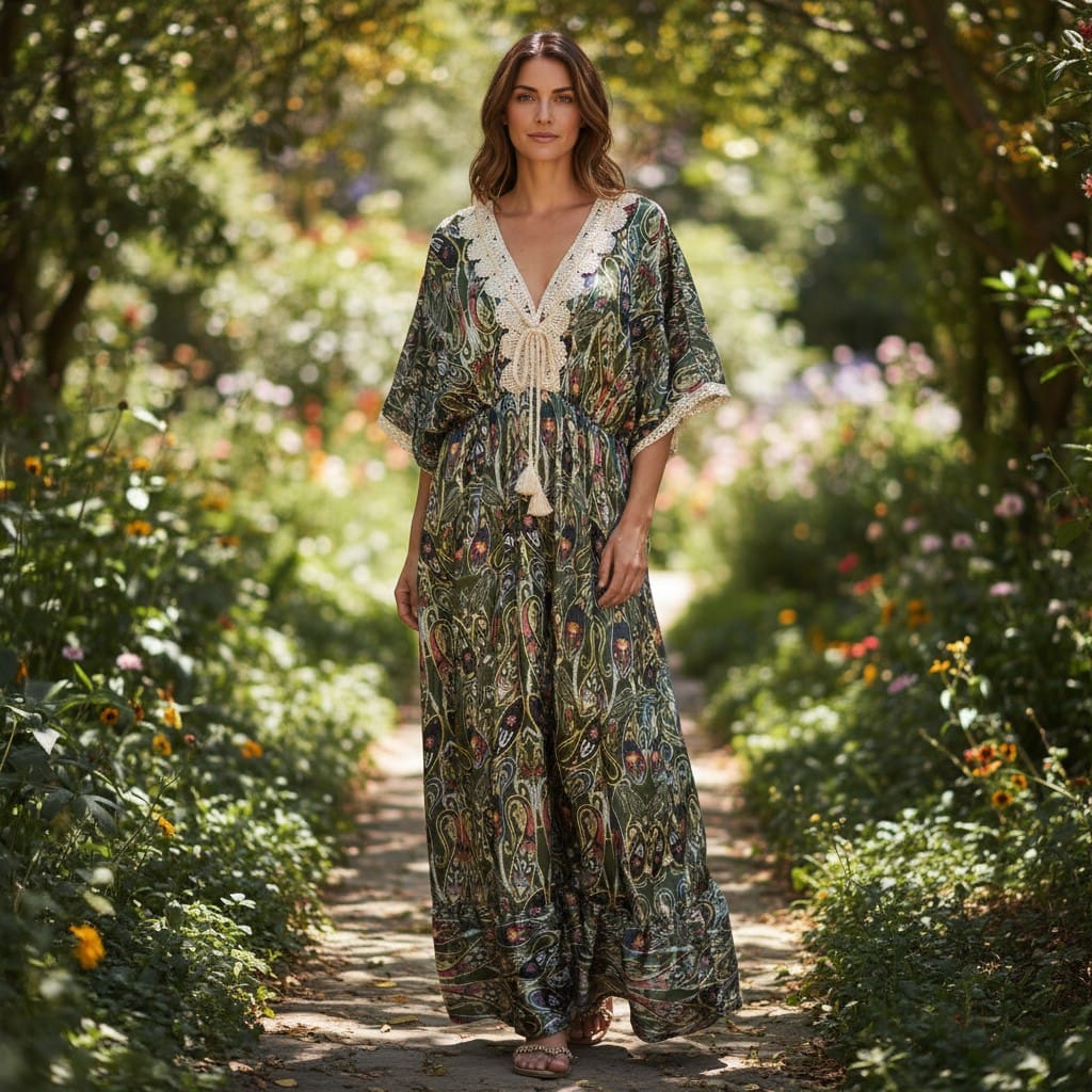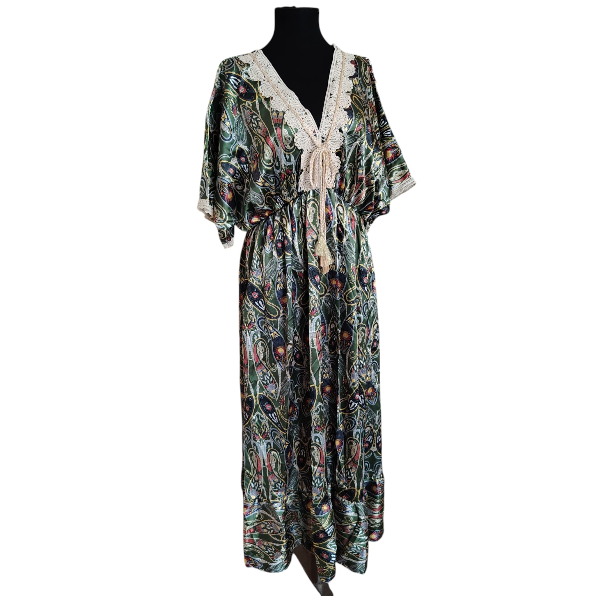 Rochie Maxi Boho-Chic – Forest Moss Paisley