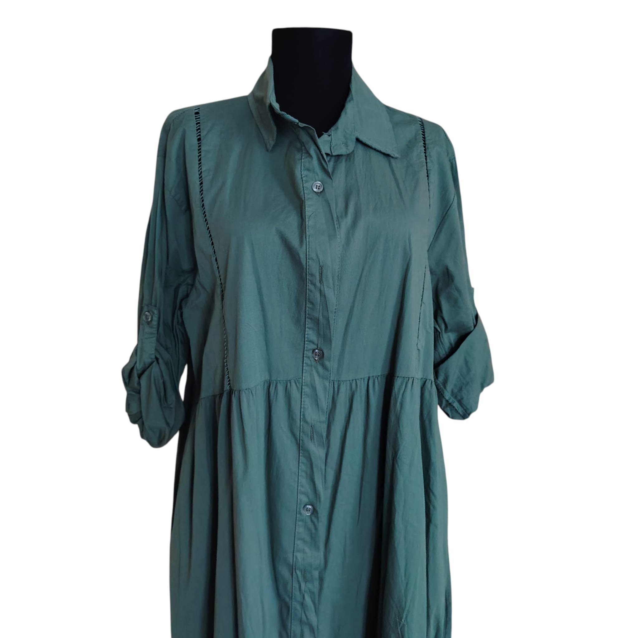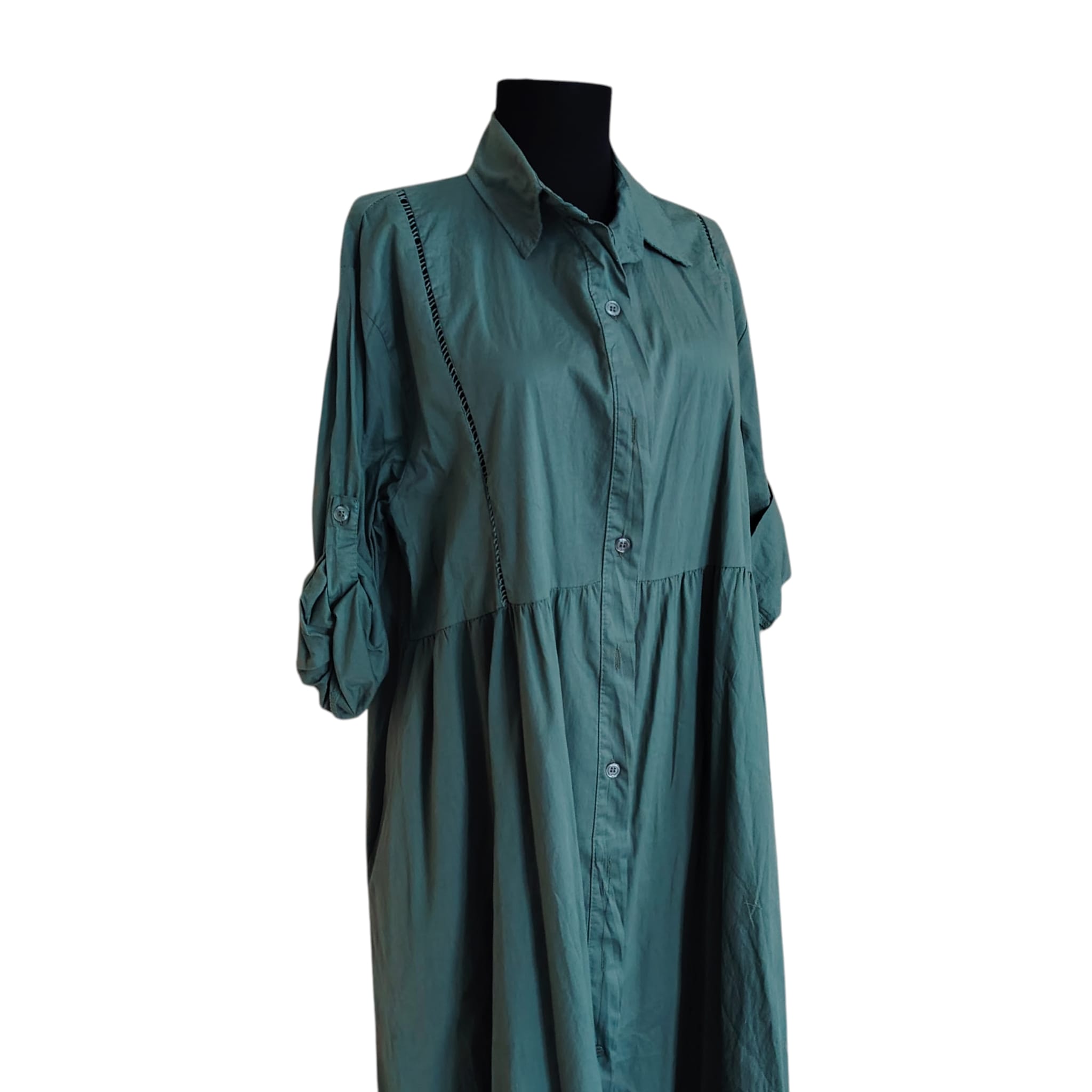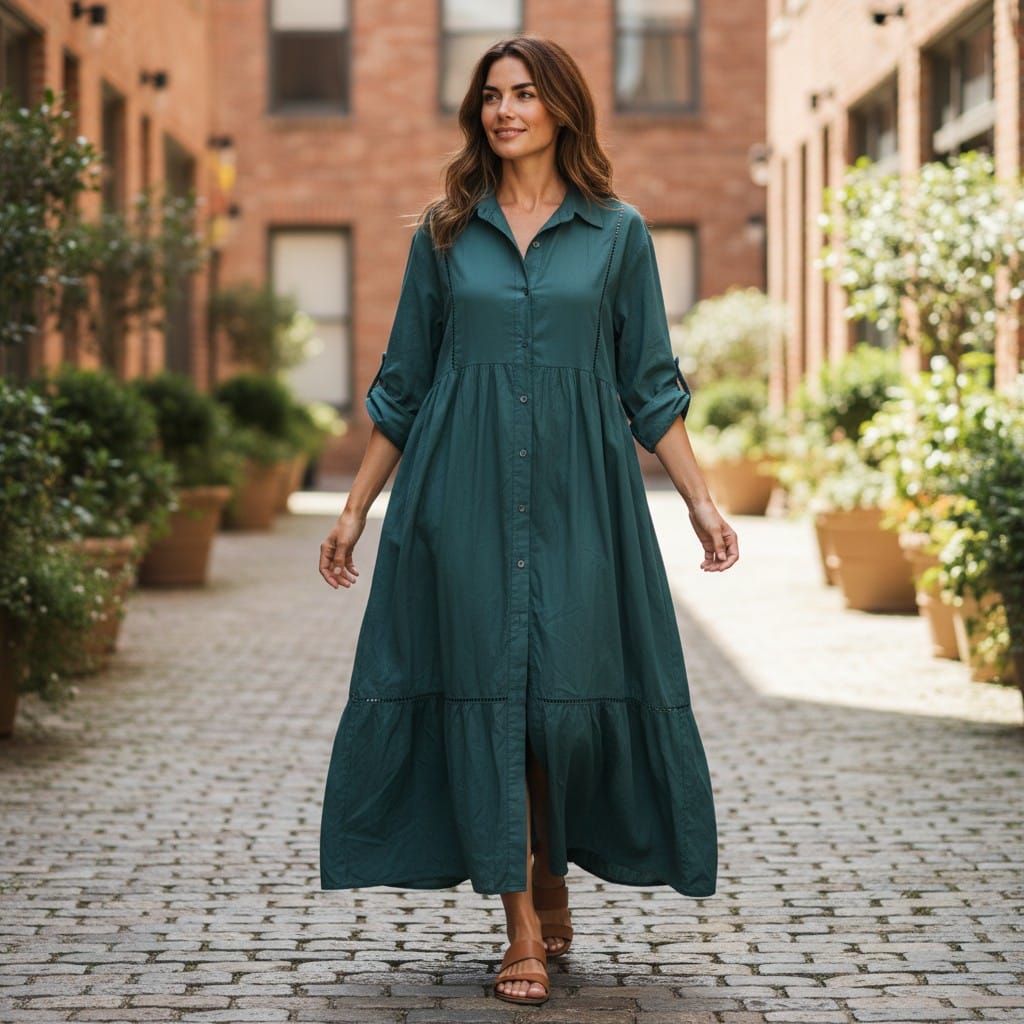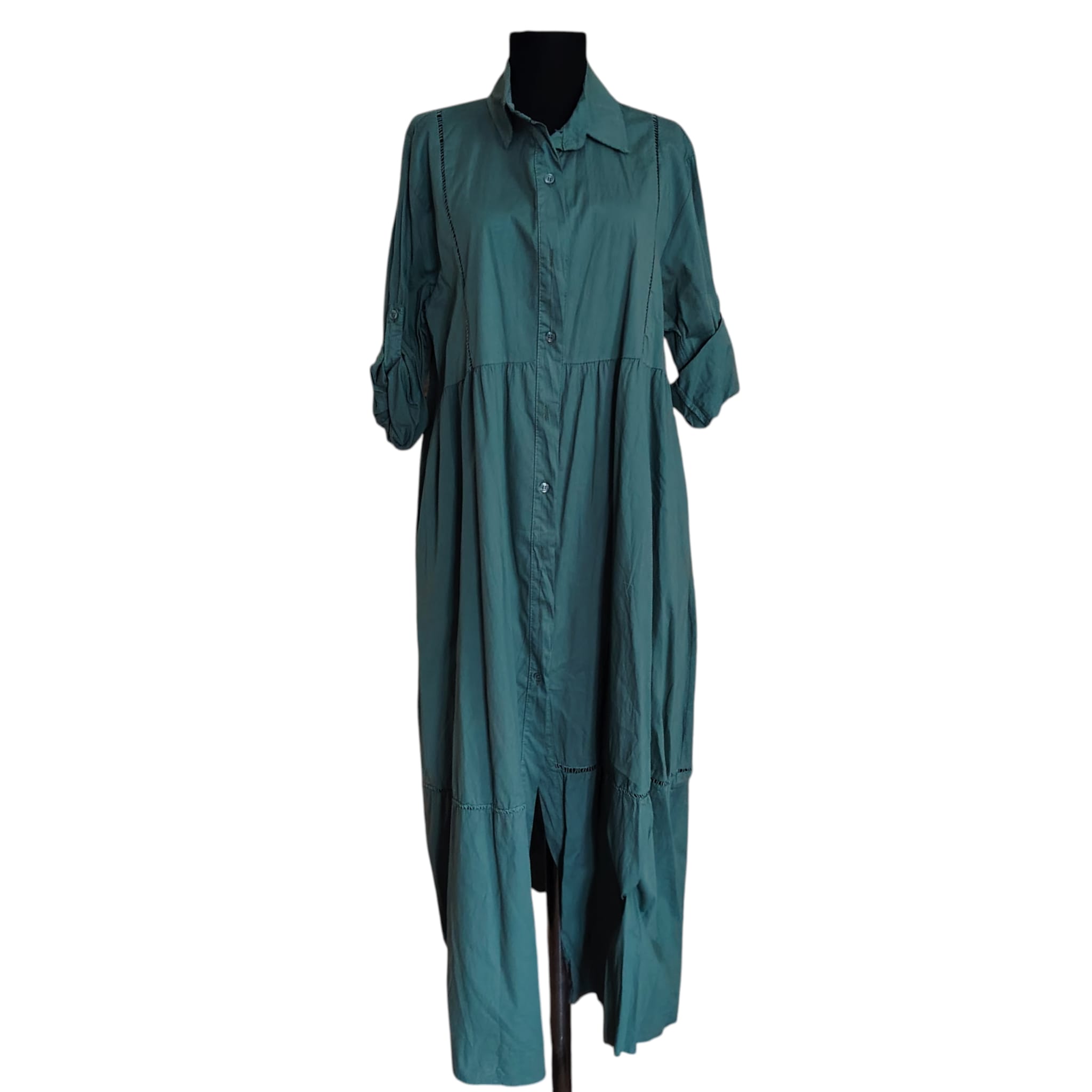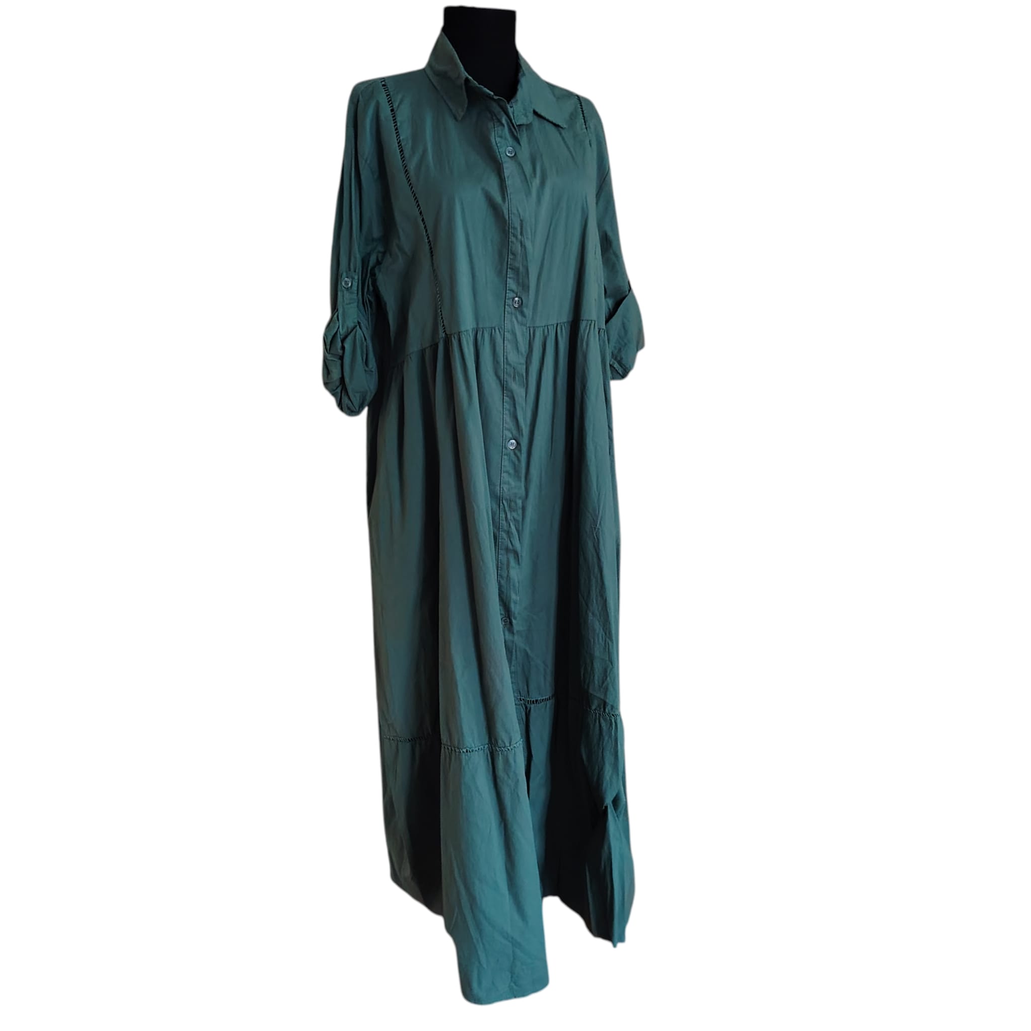 Rochie Maxi Tip Cămașă – Verde Petrol