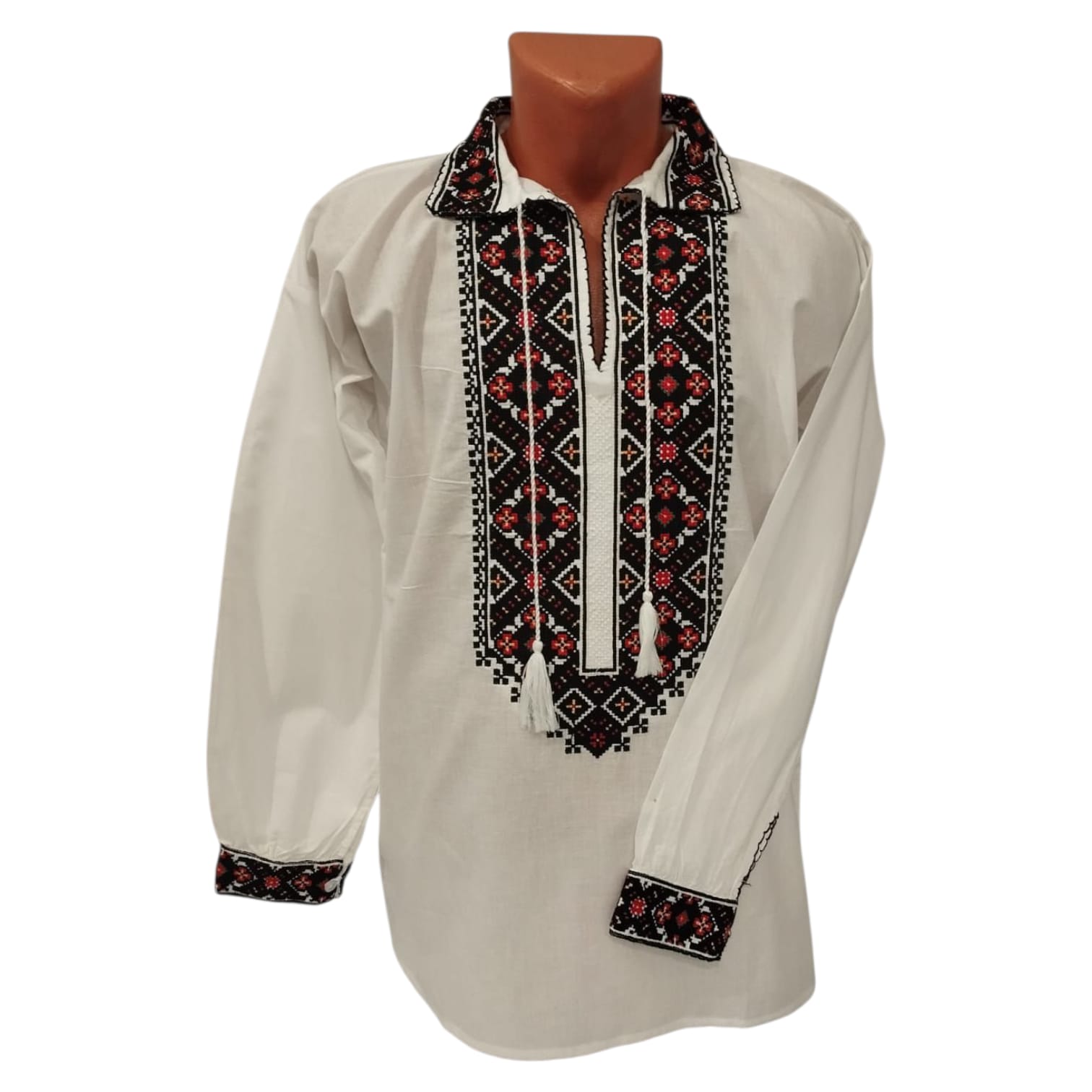 Camasa traditionala brodata cu ata colorata, motiv geometric,  ce  se poate  purta in multe  zone ale tarii. Camasa este brodata pe piept, guler si mansete [ se inchide cu nasture] .