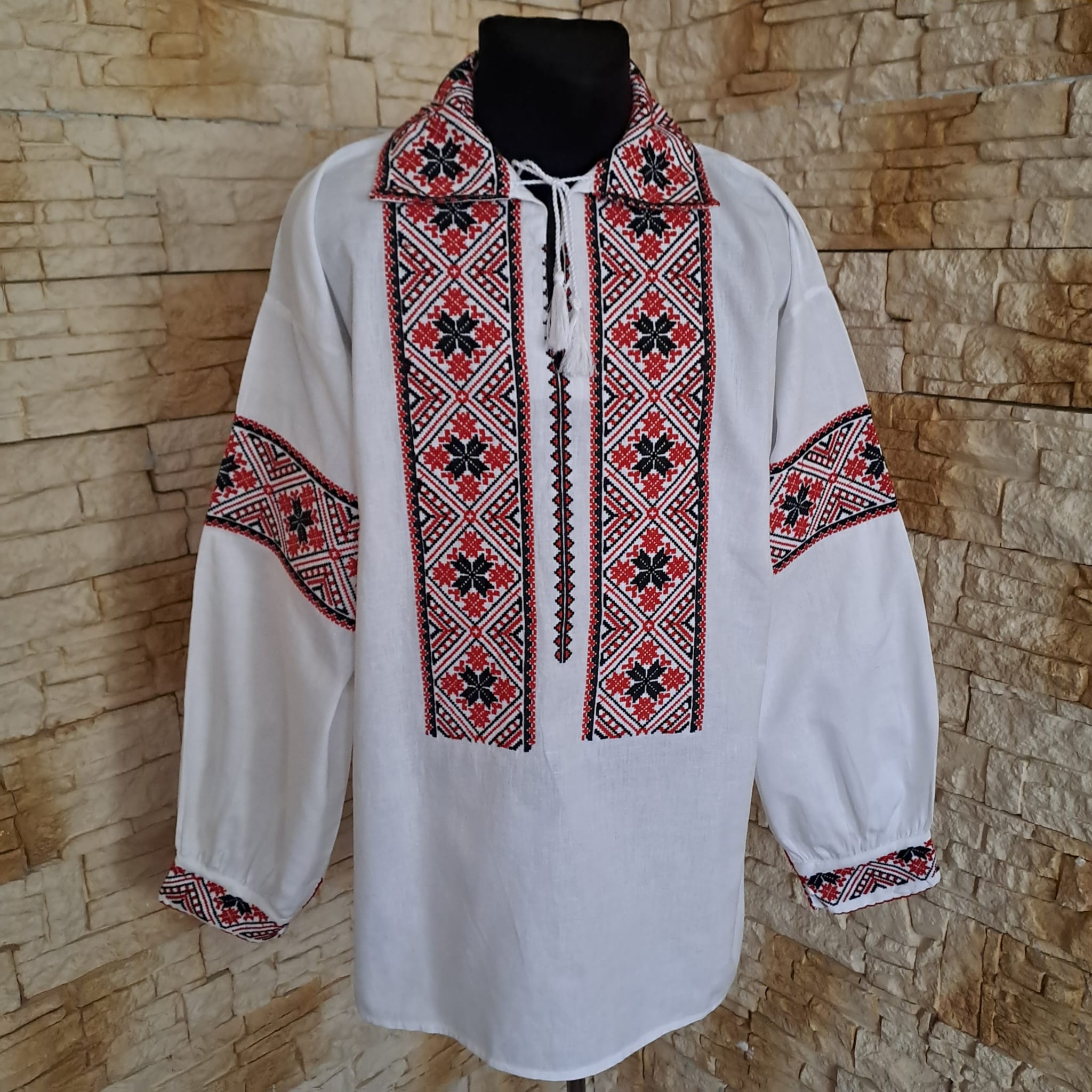 Camasa traditionala brodata , motiv geometric, ce se poate purta in multe zone ale tarii. Camasa este brodata pe guler, umar si manseta [ se inchide cu nasture] . Culori folosite rosu cu negru.