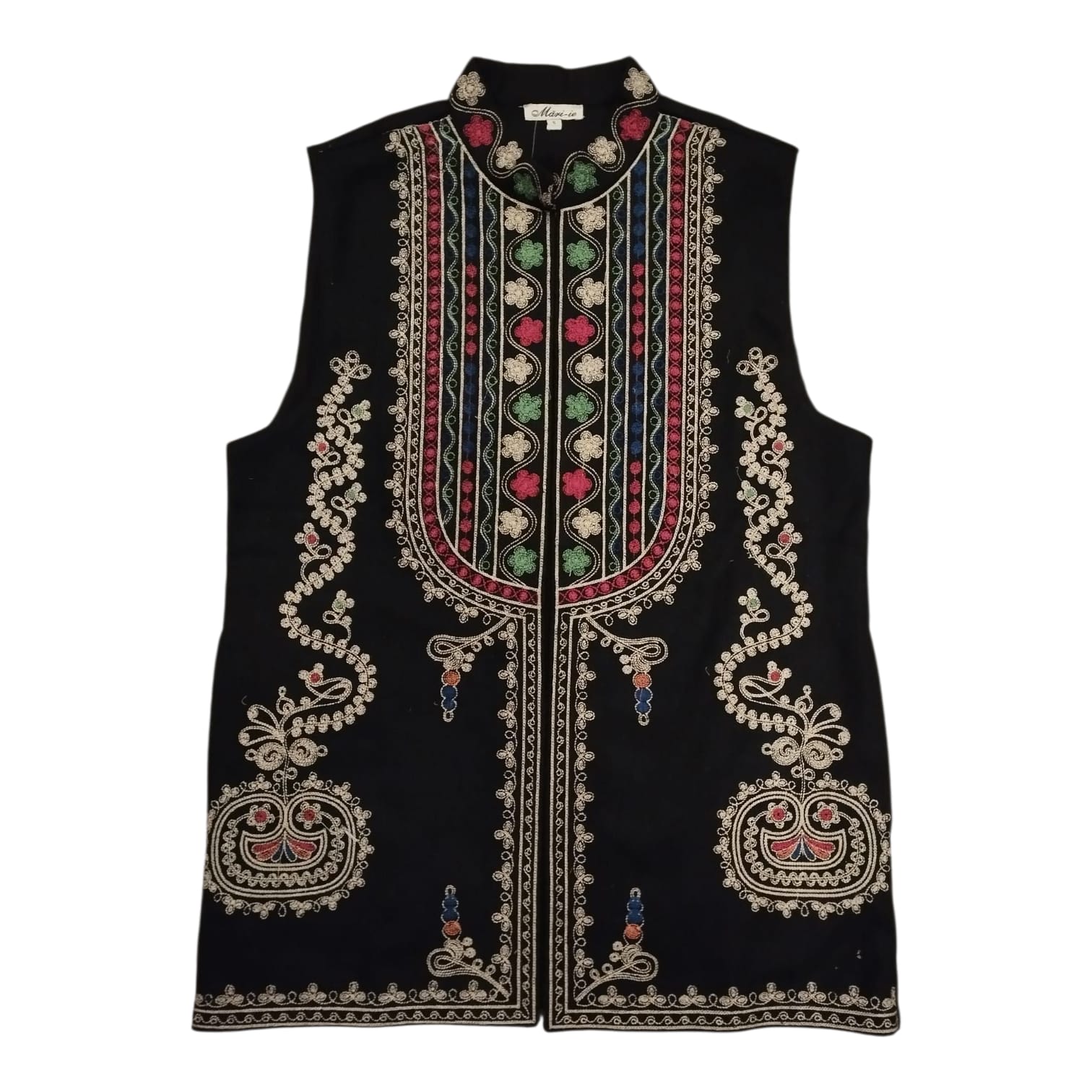 Vesta traditionala fond negru , brodata cu ata colorata, motiv geometric. Avand material bun, stofa din lana, vesta se aseaza foarte bine pe corp. Se poarta cu camasa traditionala la evenimente culturale sau cu o camasa simpla , depinde de fiecare persoana. Vesta e captusita si are broderie la masina,