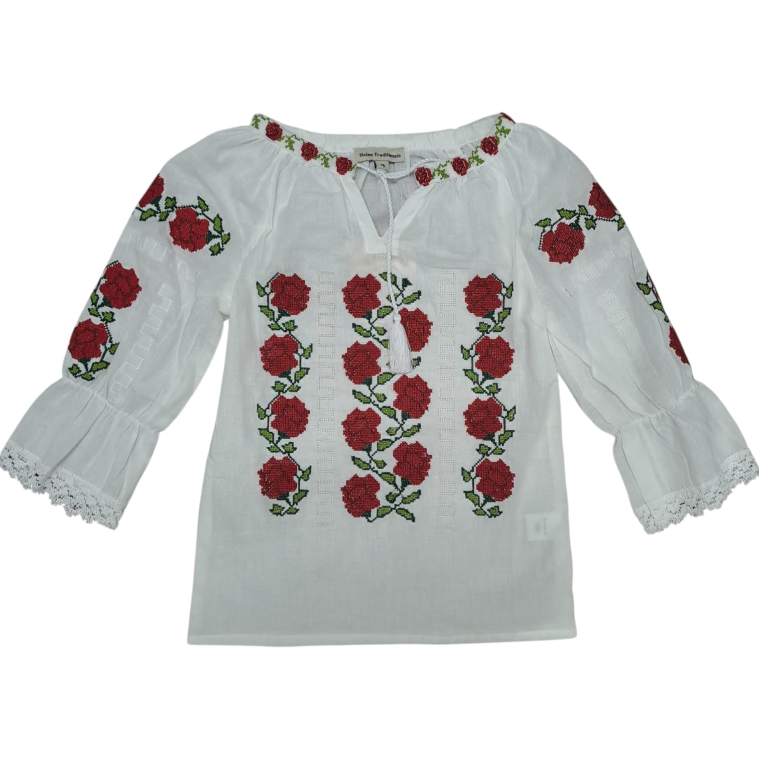 Ie traditionala fetita, brodata cu motiv floral , alb, rosu si verde. La are siret reglabil. Manecile au volan si dantela ca terminatie. Aceasta ie este purtata cu mandrie la evenimente culturale si traditionale.
