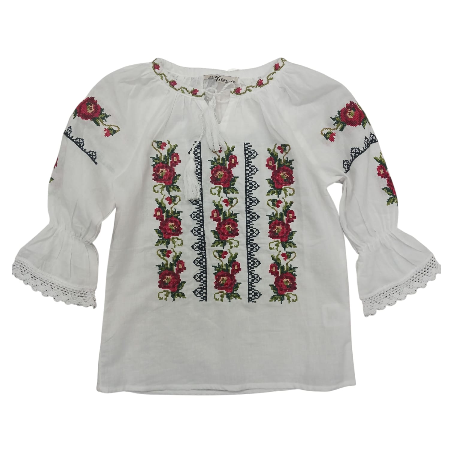 Ie traditionala fetita, brodata , motiv floral colorat. La gat are siret reglabil iar la maneci are volan cu dantela ca terminatie. Se poarta cu mandrie zi de zi sau la evenimente culturale.