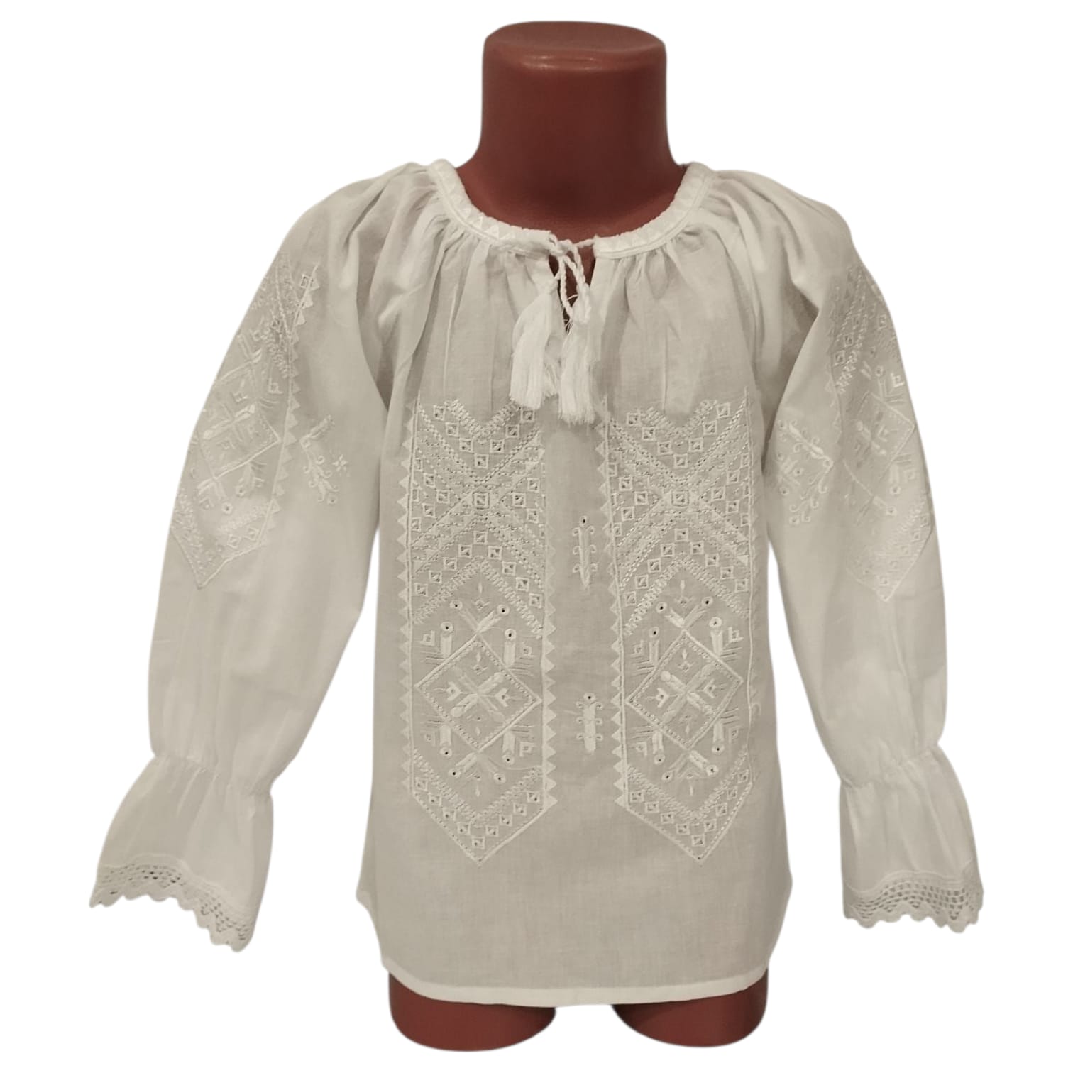 Ie traditionala fetita, brodata , motiv floral colorat. La gat are siret reglabil iar la maneci are volan cu dantela ca terminatie. Se poarta cu mandrie zi de zi sau la evenimente culturale.