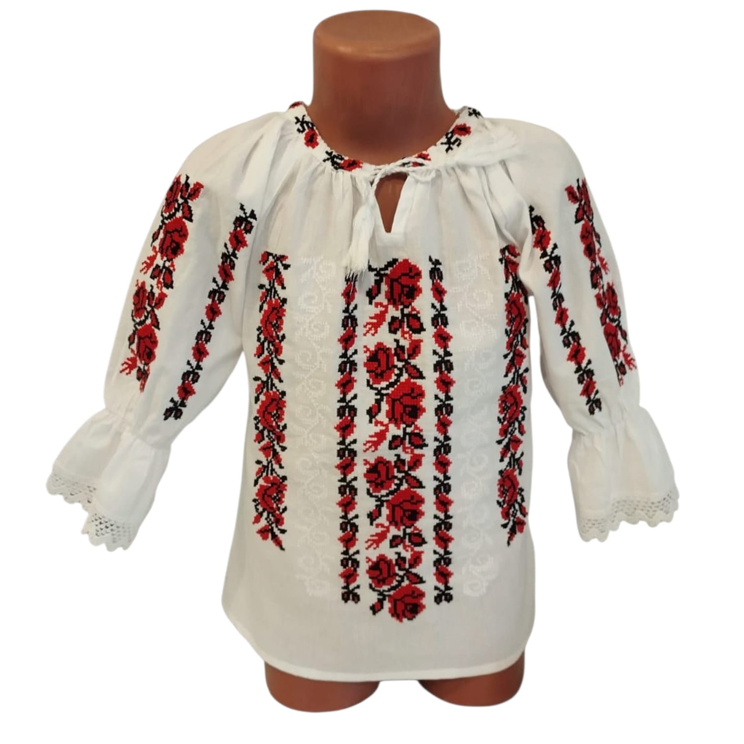 Ie traditionala fond alb, brodata cu ata rosie si neagra, motiv floral. La maneca are volan si dantela ca terminatie. Se poarta cu mandrie la evenimente culturale si traditionale.