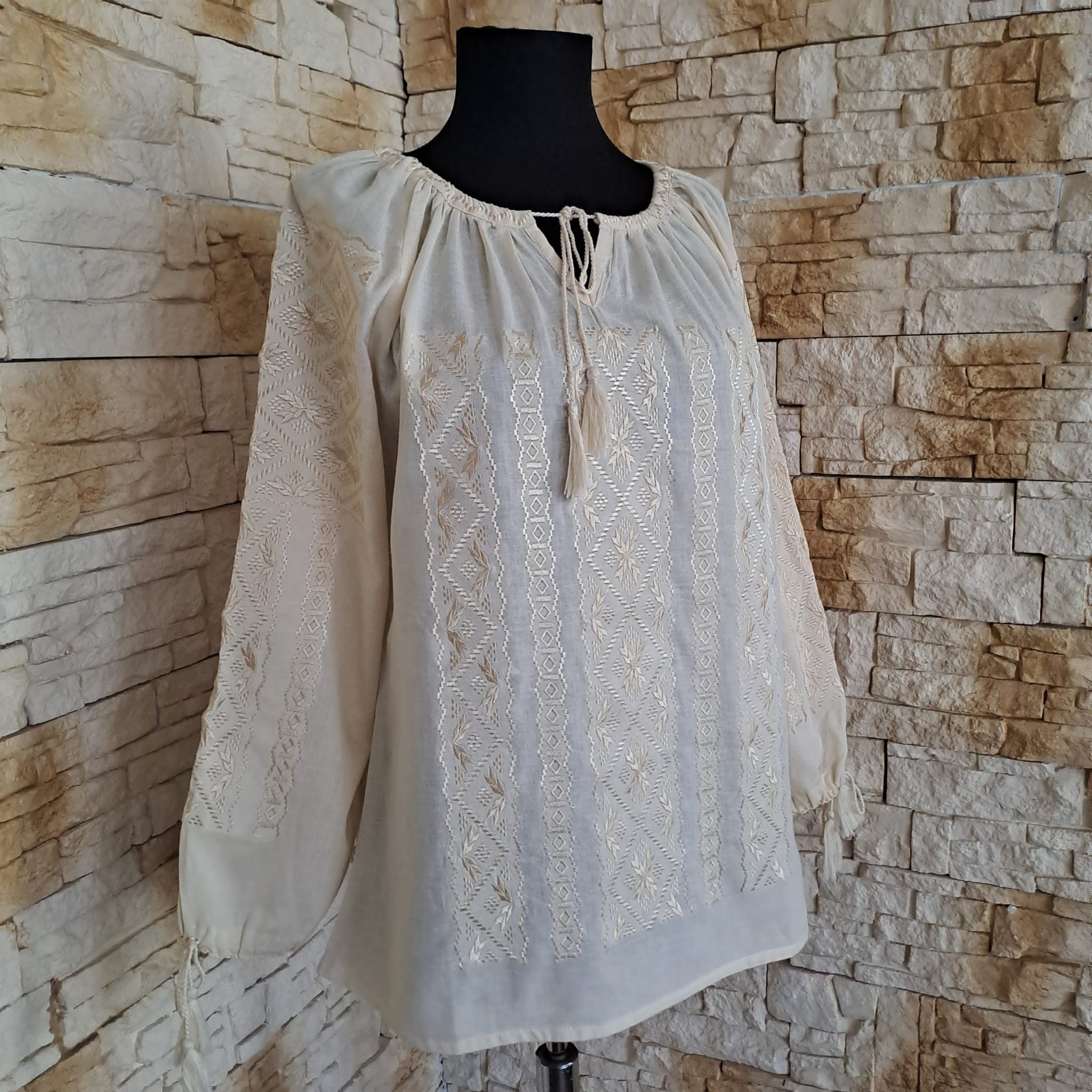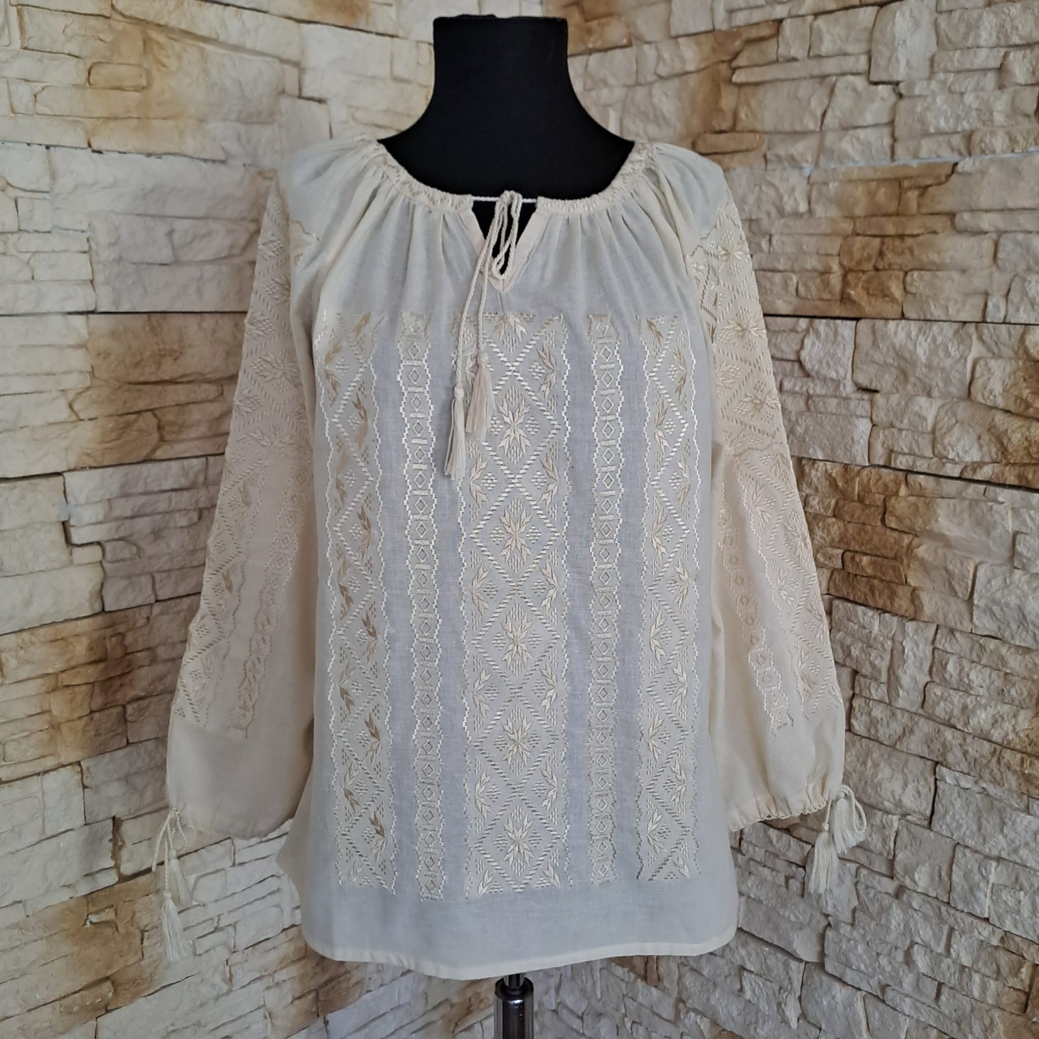 Fiecare figura este brodată cu precizie la mașina de cusut reînvie motivele ancestrale care simbolizează prospețimea și bucuria. Materialul natural oferă un confort desăvârșit, iar designul aerisit o face ideală pentru orice sezon. Poart-o la evenimente tradiționale sau asorteaz-o cu o pereche de blugi pentru un look modern, dar plin de autenticitate.
