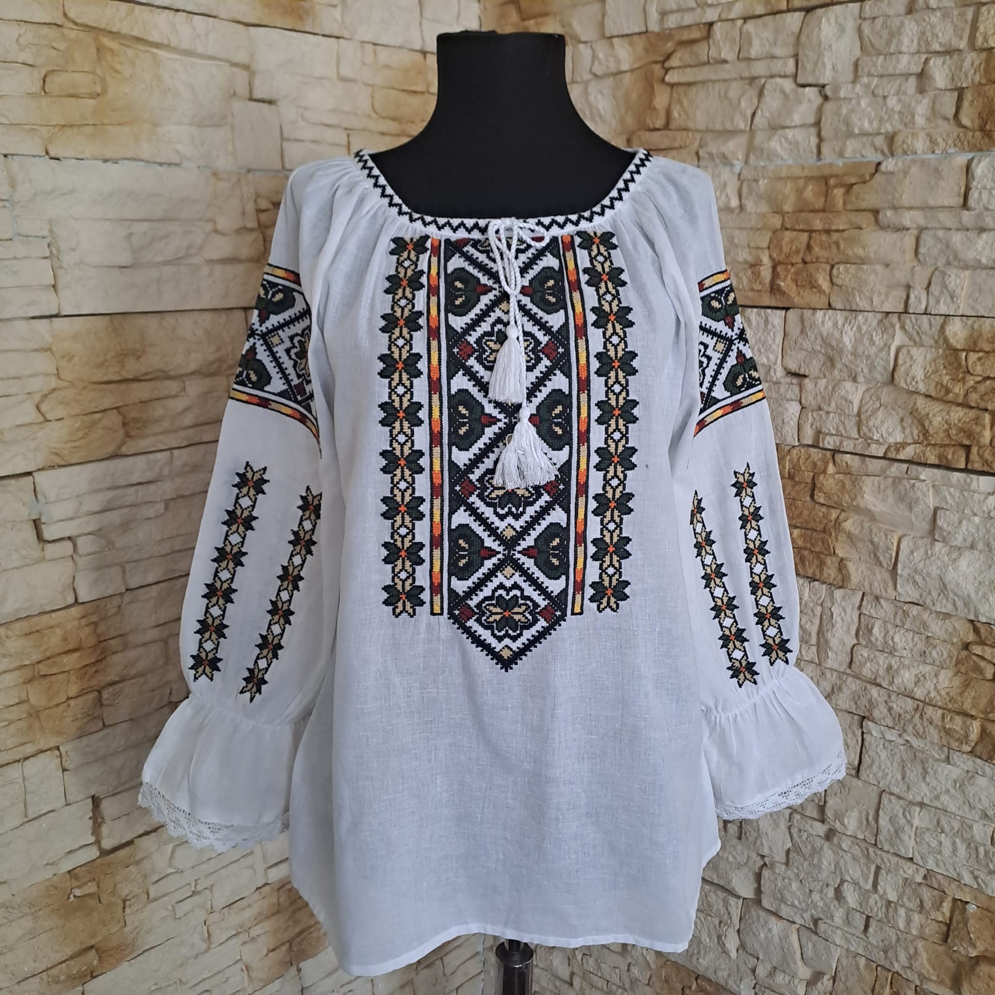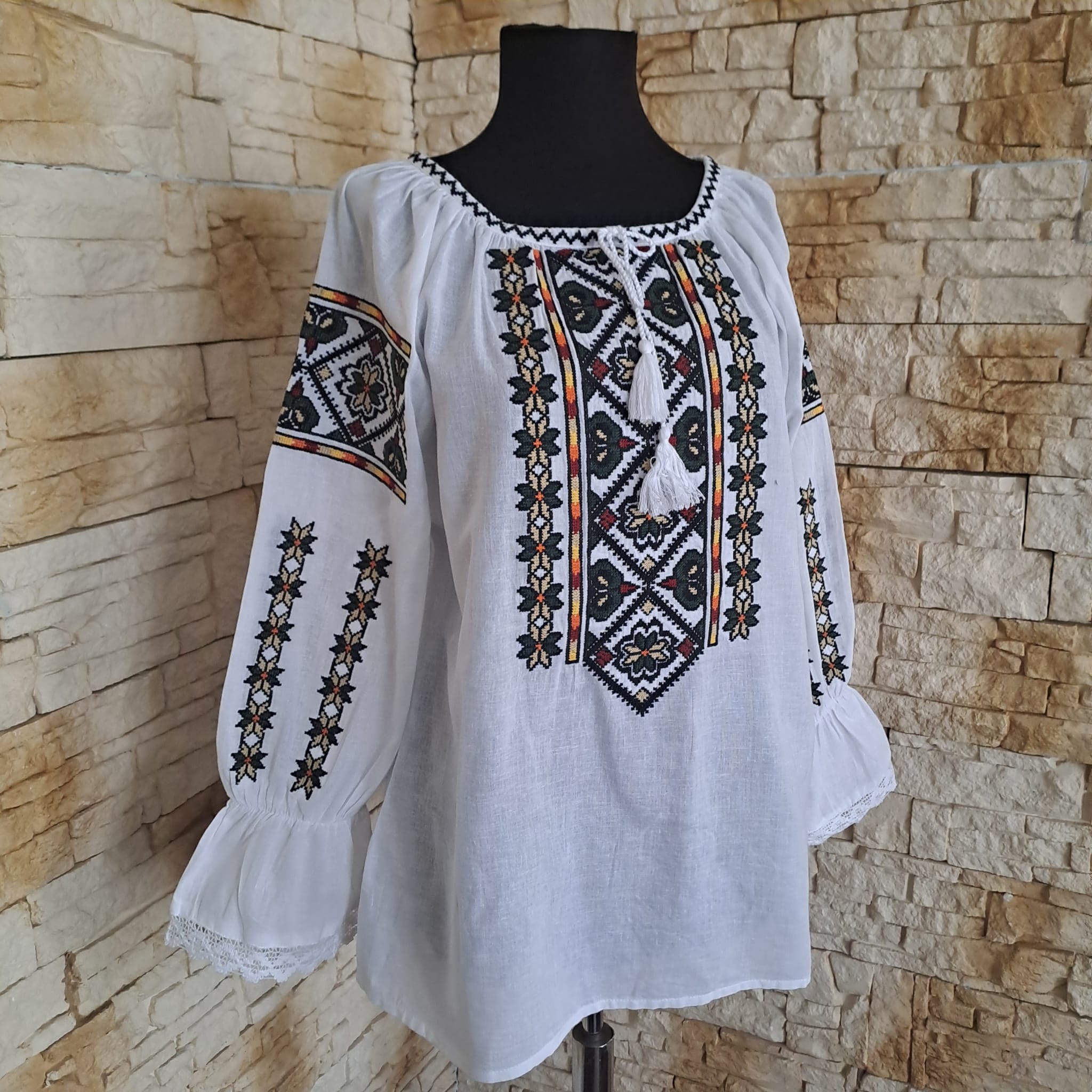 Ie fond alb brodata cu, ata colorata, motiv geometric, ce reprezinta identitatea culturala si spirituala a purtatoarei. Aceasta este o piesa vestimentara ce se poarta in multe zone ale tarii. Maneca are terminatie cu volan si dantela. La gat are siret reglabil.