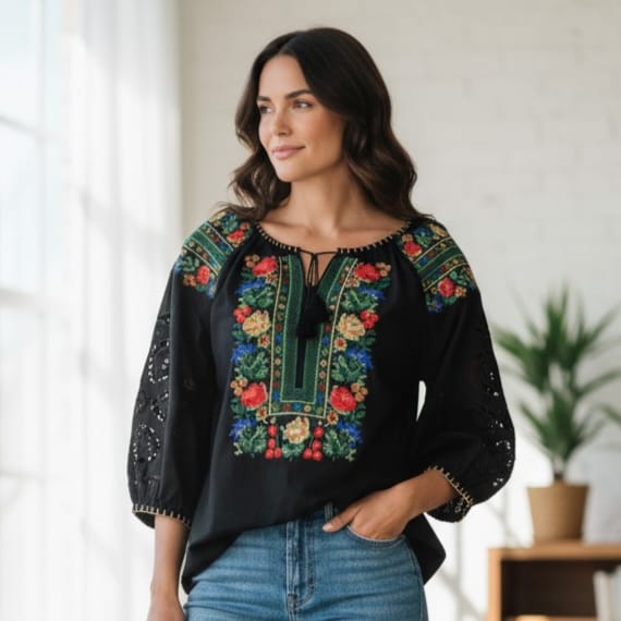 Bluza brodata – Eleganță Florală cu Detalii din Broderie Spartă