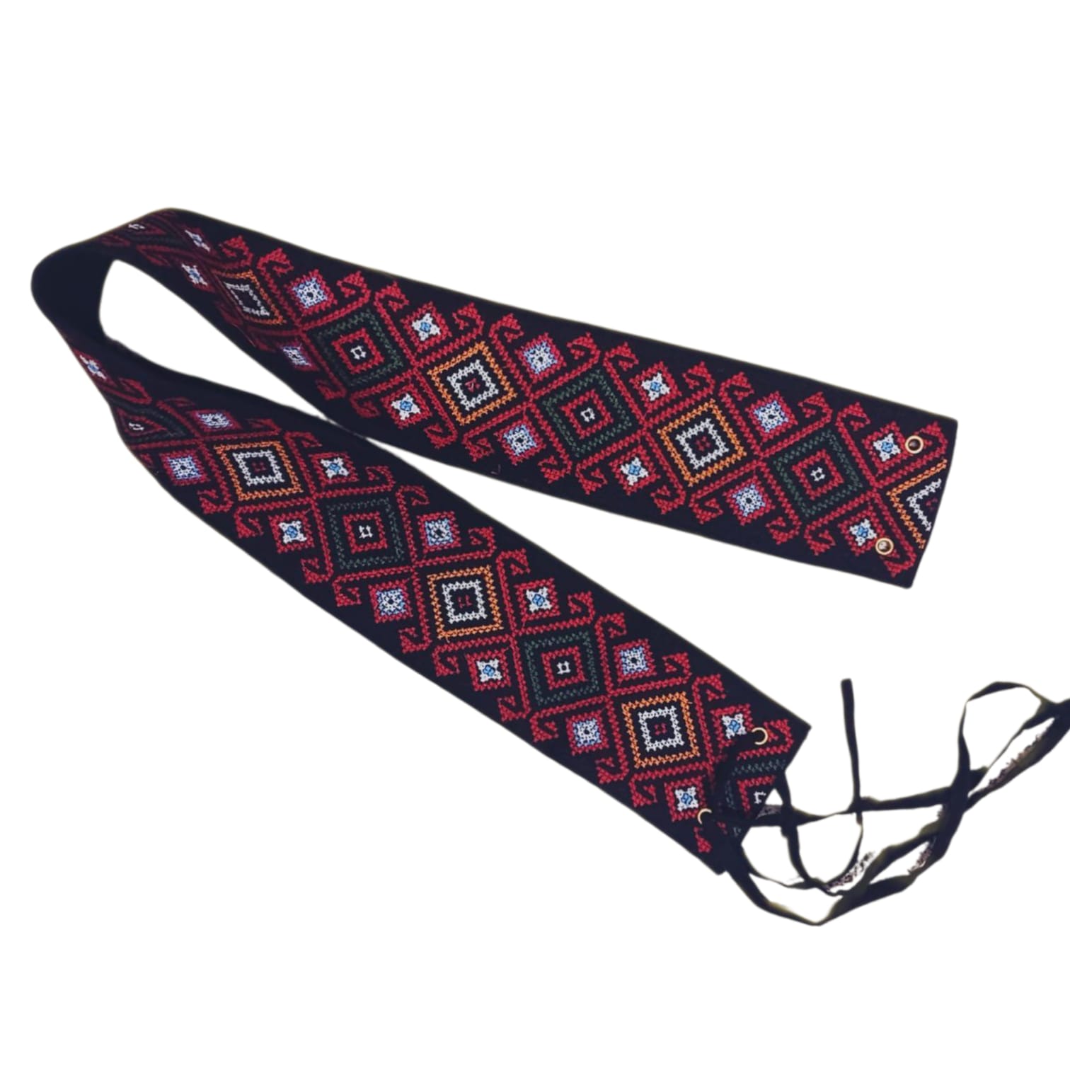 Brau traditional fond negru , brodat cu ata rosie si alba, motiv geometric. Avand material f. bun, stofa din lana, se aseaza bine , conturand talia.
